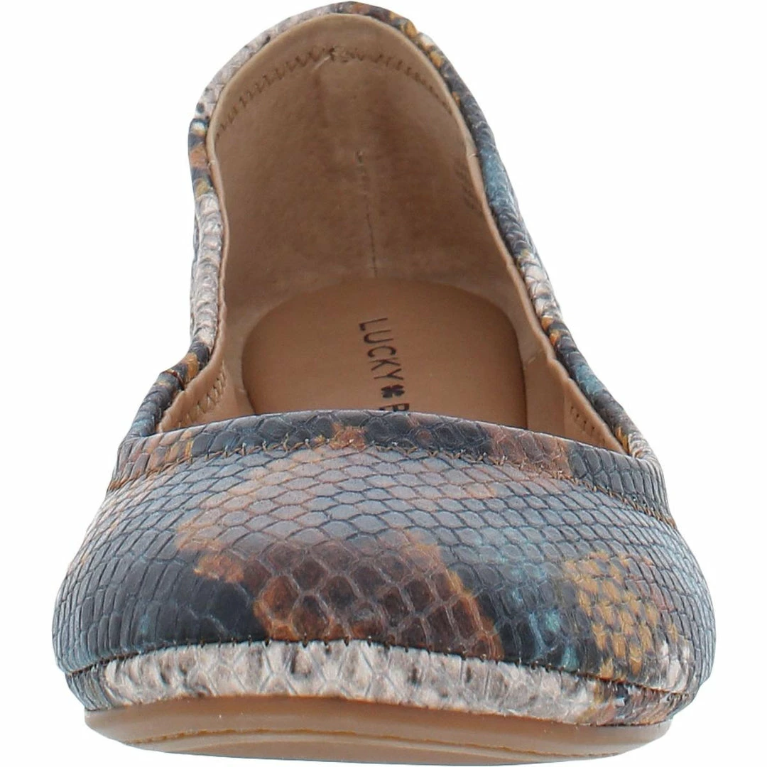 The Emmie is a fashion staple of the Lucky Brand Jeans footwear line. The ballet flat is made of genuine leather or fabric uppers, depending on the color chosen with multiple pattern options. It features a round toe construction that features a faux leather padded insole. The ballet flat features a .25″ heel and a rubber flexible outsole.