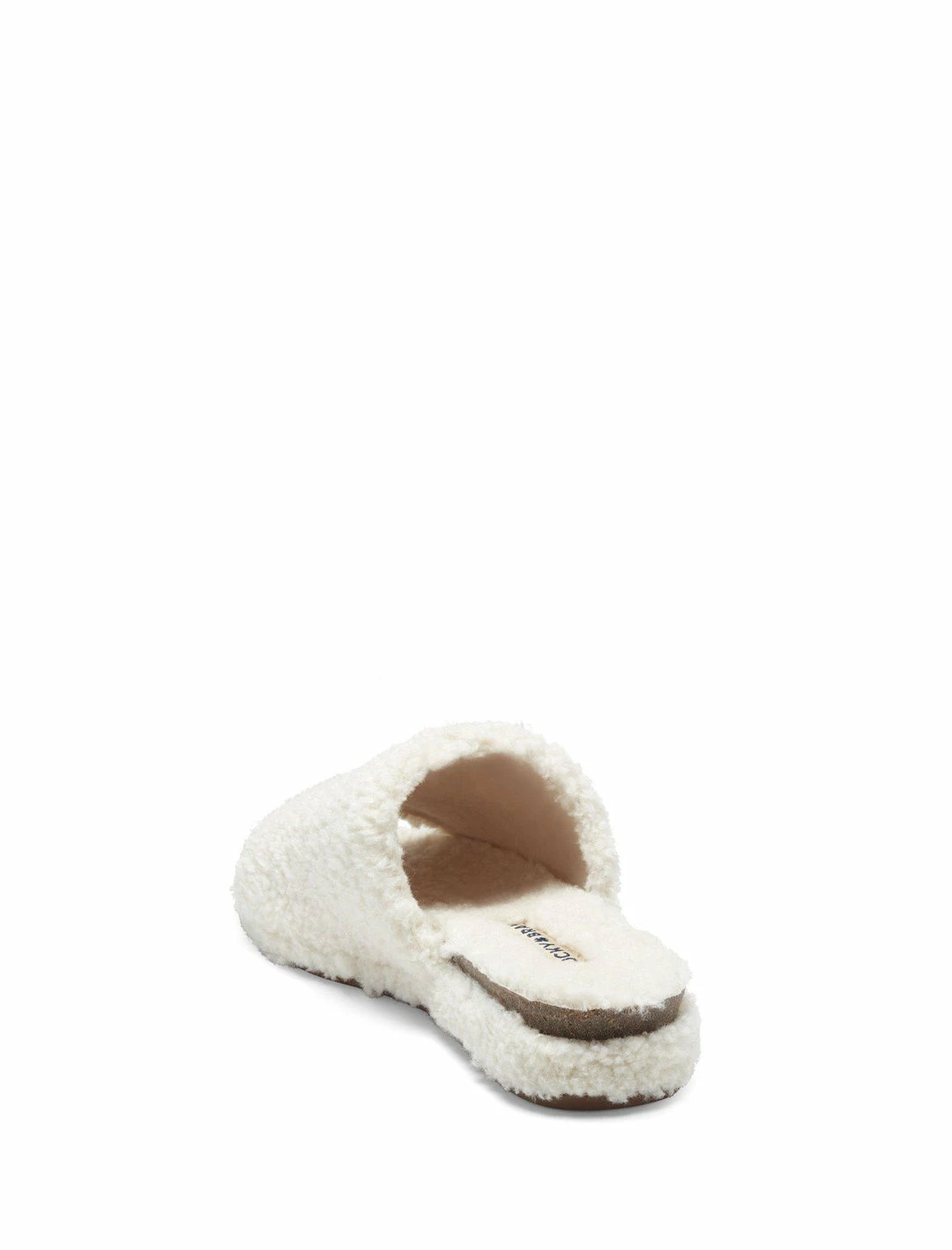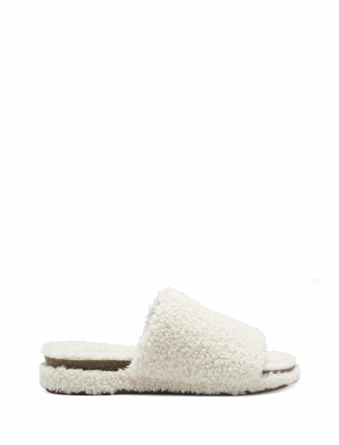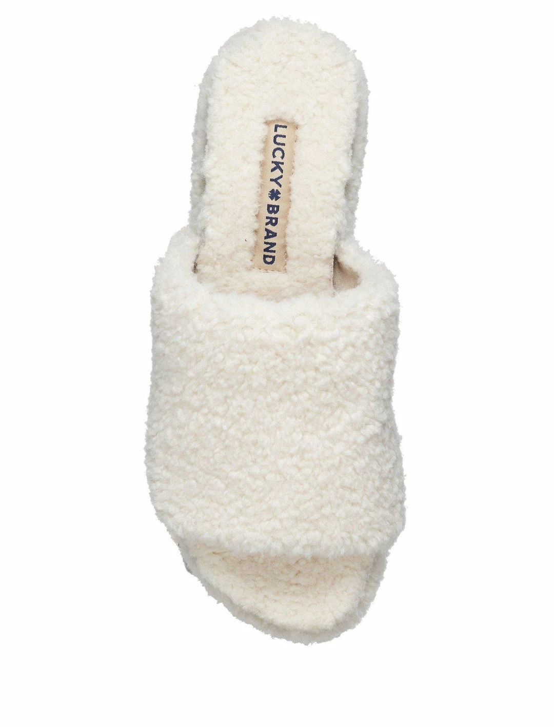 You’ll feel like you’re walking on Cloud 9 when you slip into these fuzzy slides. This slipper features faux shearling material that’ll bundle your feet in soft comfort. Whether you’re wearing them around the house or stepping out for errands, this sandal provides the best look and feel.ul. uluFaux Shearling. uAn important note on the use of a culturally appropriated term in this product description – Lucky Brand has replaced the term Sherpa with Faux Shearling as part of our company-wide effort to remove culturally appropriated designs, terms, and names from current and future products. Sherpa refers to an indigenous people native to Tibet and Nepal in the eastern Himalayas of Central Asia.