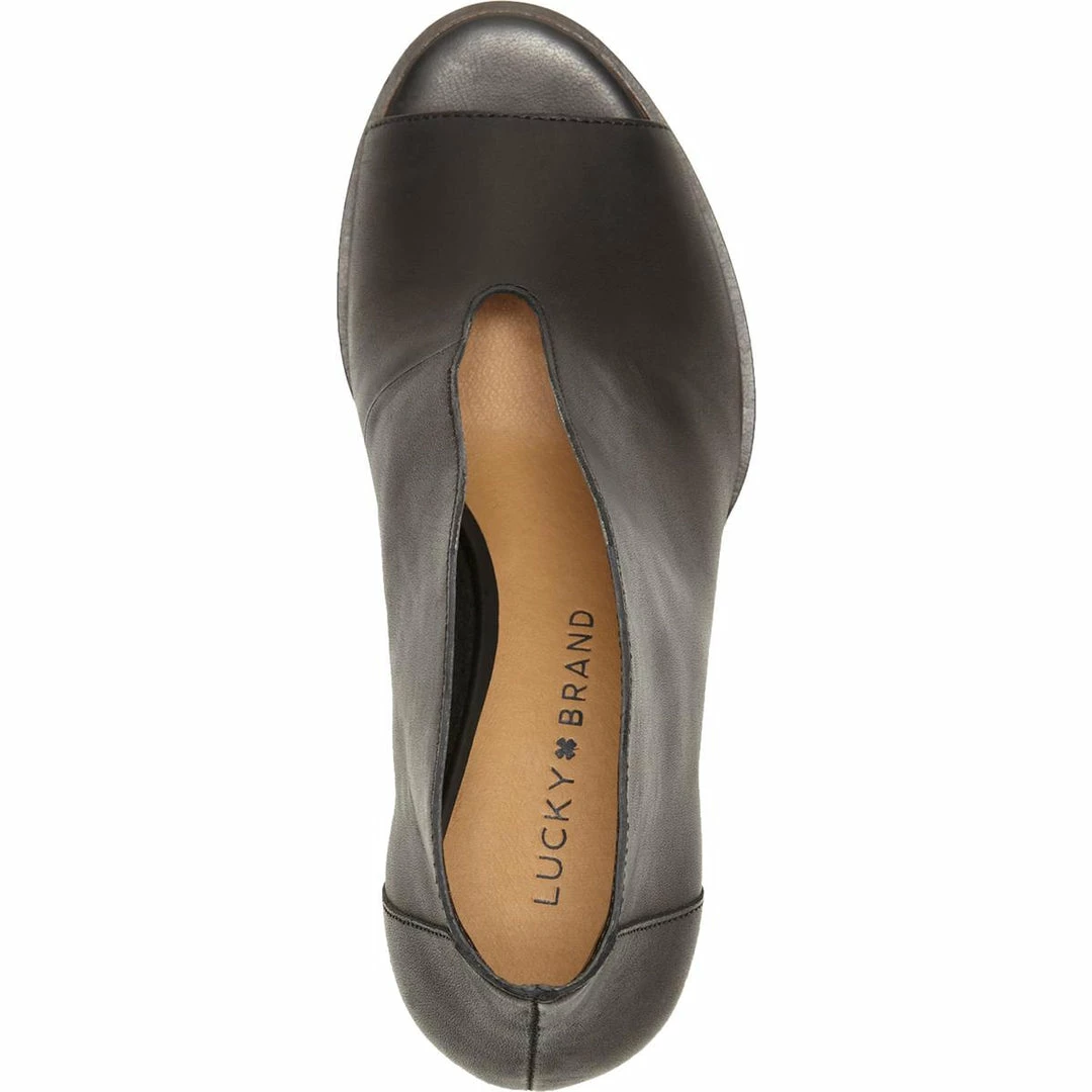 Step out in style with the Joal heeled bootie by Lucky Brand. This boot is made up of solid or snake print leather uppers. It features a slip on design with open toe and memory foam insoles for wearing comfort. It has rubber outsoles w/ stacked heel measures 3″.
