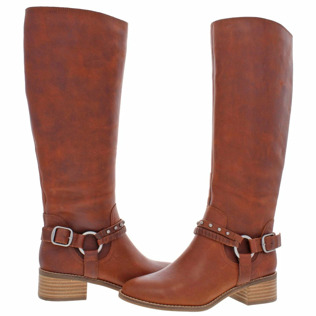 Add some sophistication to your casual style with the Lucky Brand Karesi boots. These boots are made up of leather uppers. It features a short side zip closure for easy on/off, harness details with an adjustable buckle. Its stacked block heel measures 1.25″ and shaft measures 15.5″.
