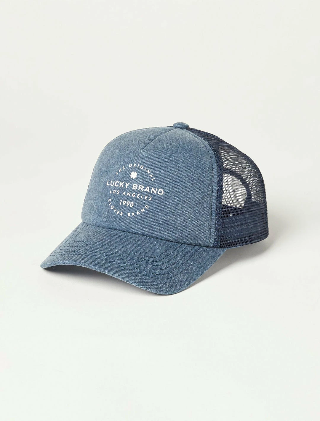 Show off brand loyalty with this trucker hat featuring a denim front, mesh back, and an adjustable snapback closure for the perfect fit.Six panel construction. Mesh venting. Adjustable snapback closure