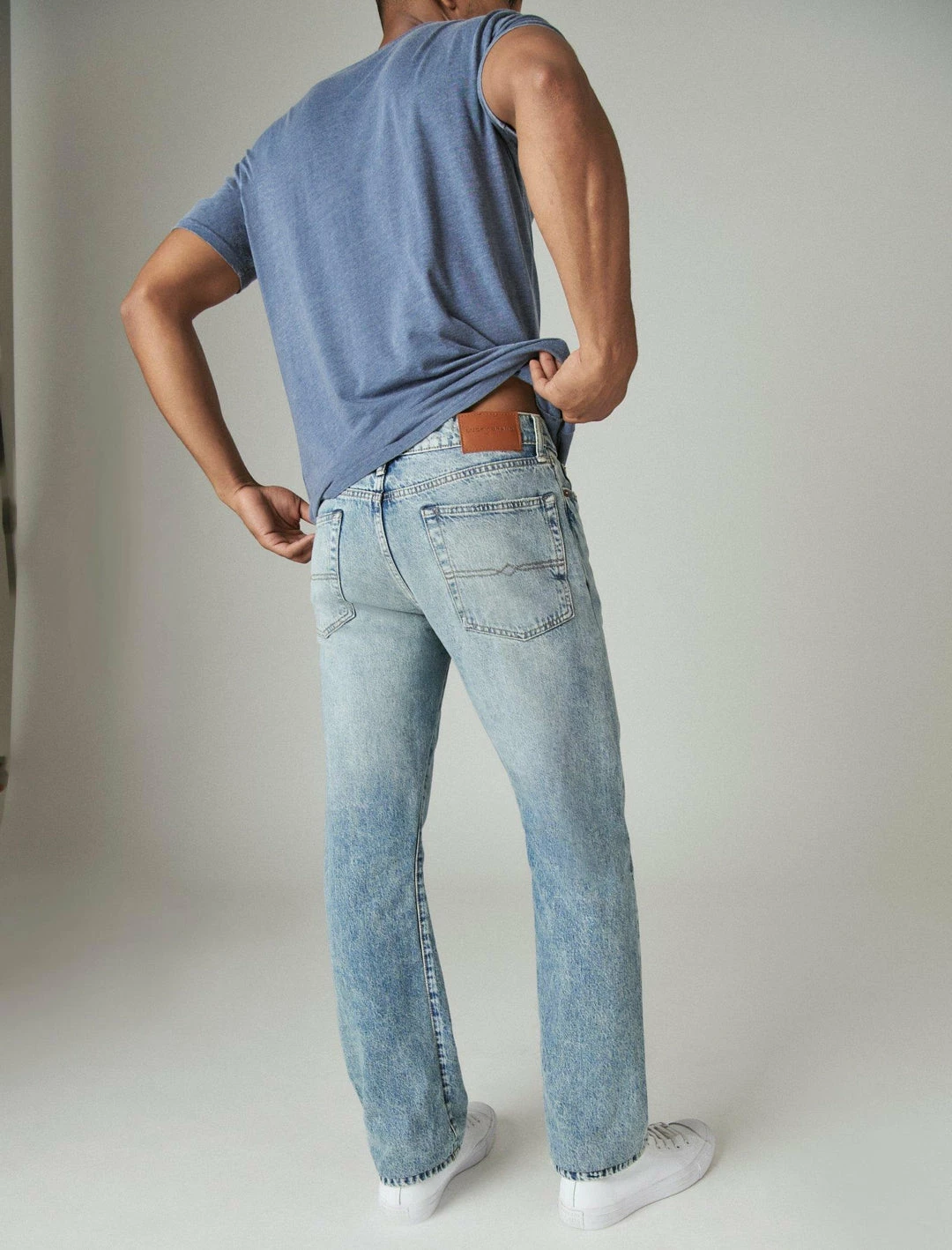 With an easy mid rise and slightly tapered leg, our 363 Straight is the go-to jean for a classic look and comfortable feel. This denim jean is made with hemp, a super strong and durable natural fiber that requires far less water and fewer pesticides to produce than traditional denim.Mid rise with a straight fit and tapered leg. Light vintage wash denim. Made with naturally strong and durable Hemp denim. 5-pocket styling with button-and-zip fly. Rise – 10 5. 8 inches; Leg opening – 17 1. 8 inches (size 32)