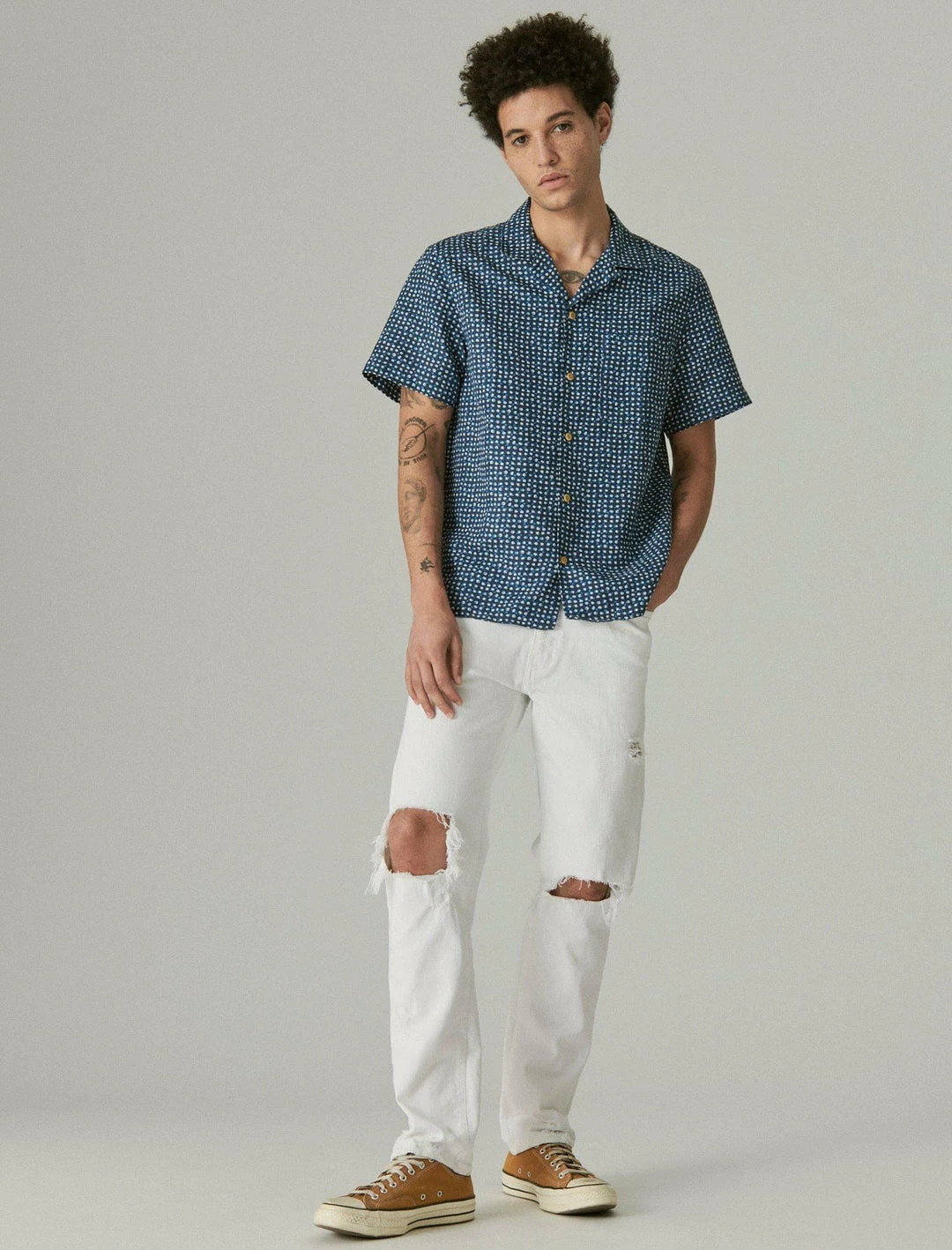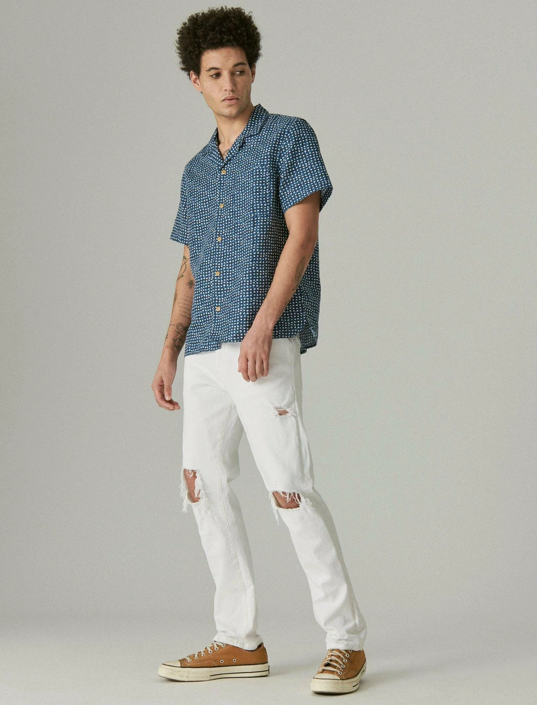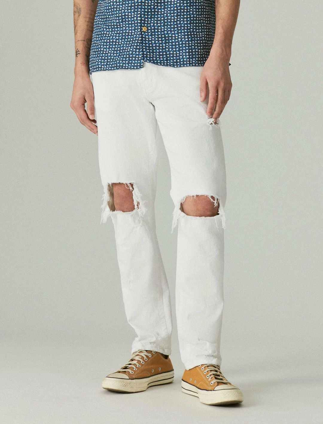 Designed specially for athletic shapes, our 410 Athletic Straight jean balances a straight fit with a modern straight leg, giving you plenty of room to move. Distressed detailing at the knees brings added edge to your look.Mid rise with a straight fit and straight leg. Distressed light wash denim. Comfort stretch with just the right amount of give. 5-pocket styling with button-and-zip fly. Rise – 11 inches; Leg opening – 15 1. 4 inches (size 32)
