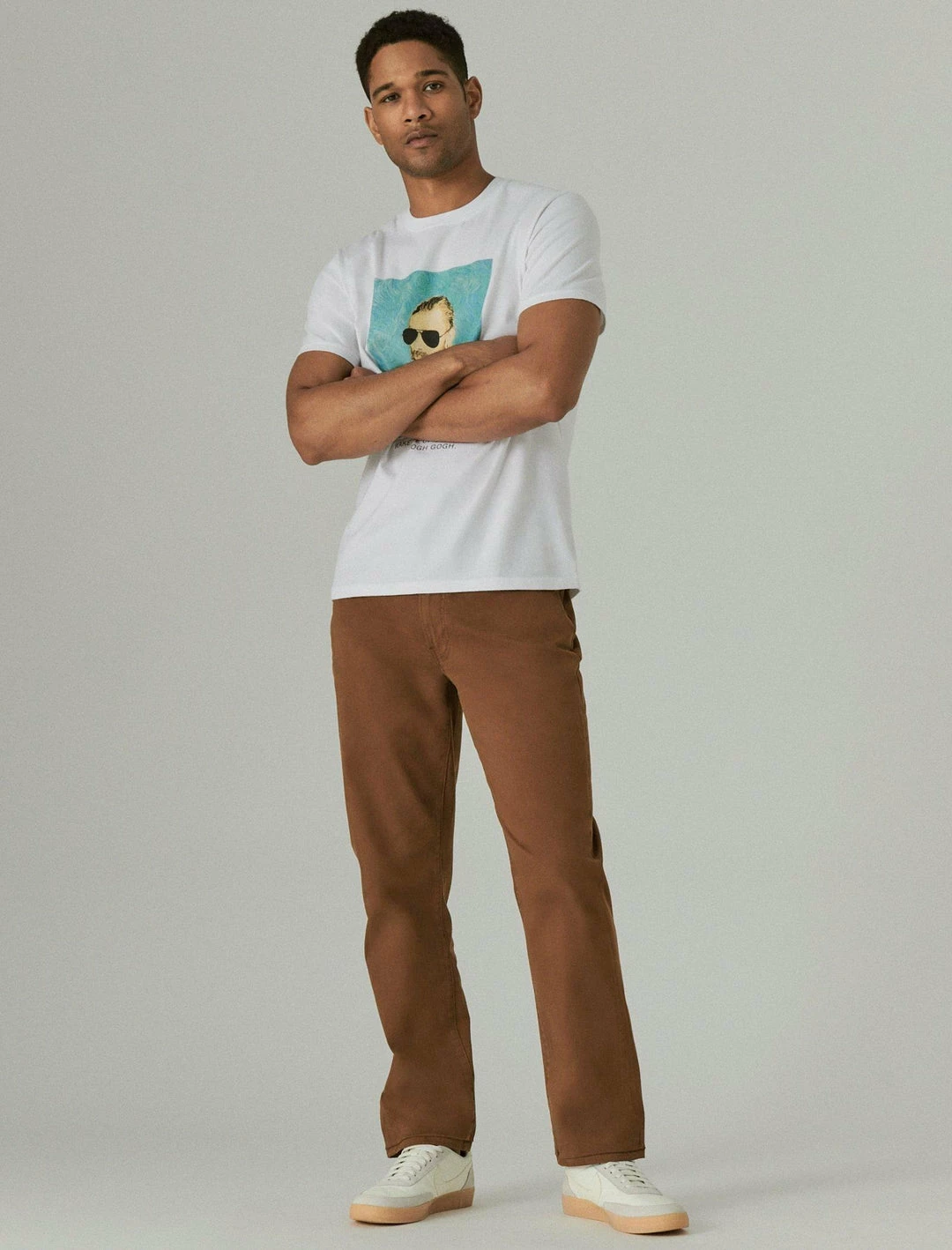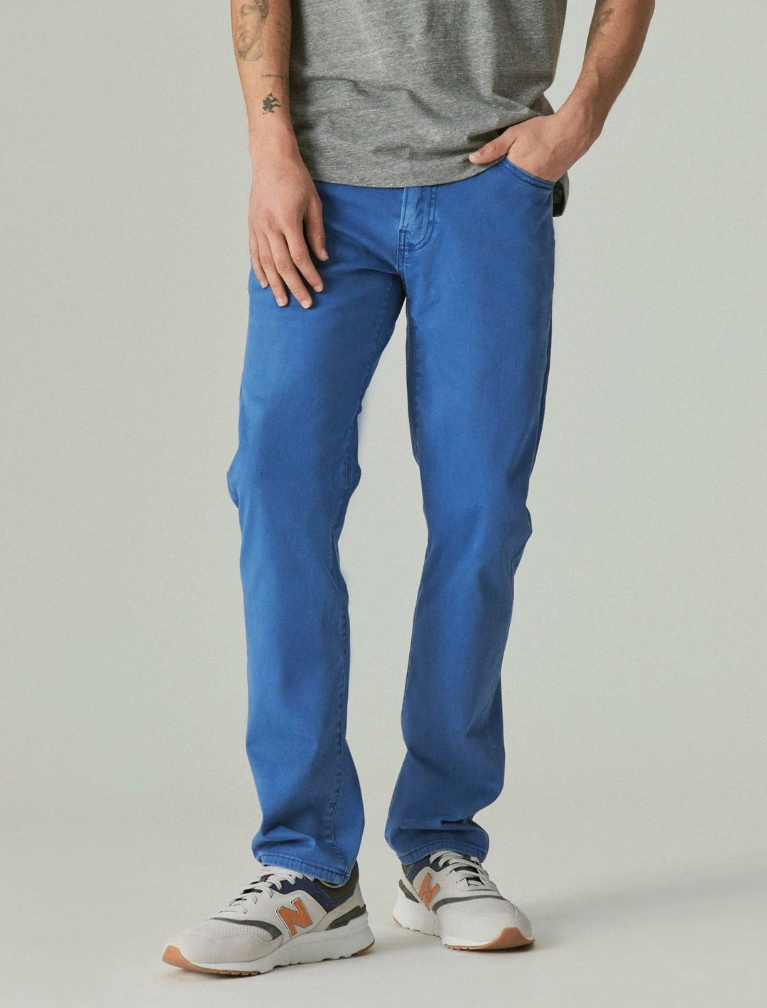 A true all-fitting classic, the 410 Athletic Straight stretch jean balances a relaxed fit and modern tapered leg for plenty of room to move. Mid rise with a relaxed fit and tapered leg. Faded colored wash. Comfort stretch. 5-pocket styling with button-and-zip fly. Rise – 11 inches; Leg opening – 15 1. 4 inches (size 32)
