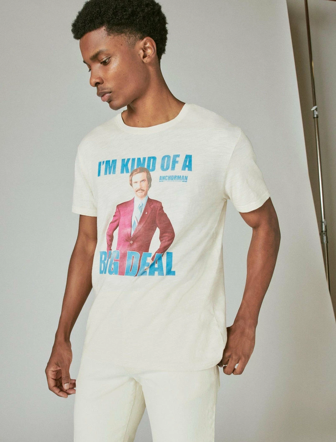 Chill out in casual comfort and style with this crewneck tee made from soft, breathable cotton and featuring iconic Anchorman graphics at the front.Crew neck. Short sleeves