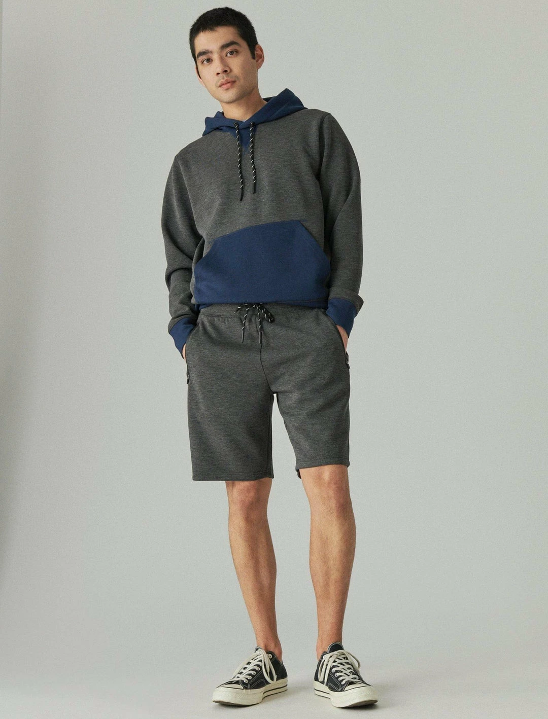 Crafted with antimicrobial, sweat-wicking fleece technology that keeps you feeling fresh all day long, this Breathe Easy Tech short features a drawstring waist for an adjustable fit and pockets to keep your essentials close. Pair with its coordinating crewneck sweatshirt to complete the look.Drawstring waist. Side zip pockets. Back patch pocket