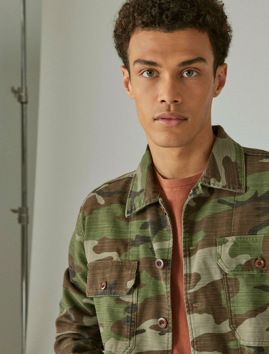 Layer on this versatile shirt jacket featured in a classic camouflage print for effortless style and a laid-back look. This shirt is cut from TENCEL , fabric, a naturally soft and lightweight fiber made from the wood pulp of trees sourced from responsibly managed forests.Button-down with spread collar. Button-close chest pockets. Button cuffs. Crafted with TENCEL , , a naturally soft and lightweight fiber made from the wood pulp of trees sourced from responsibly managed forests