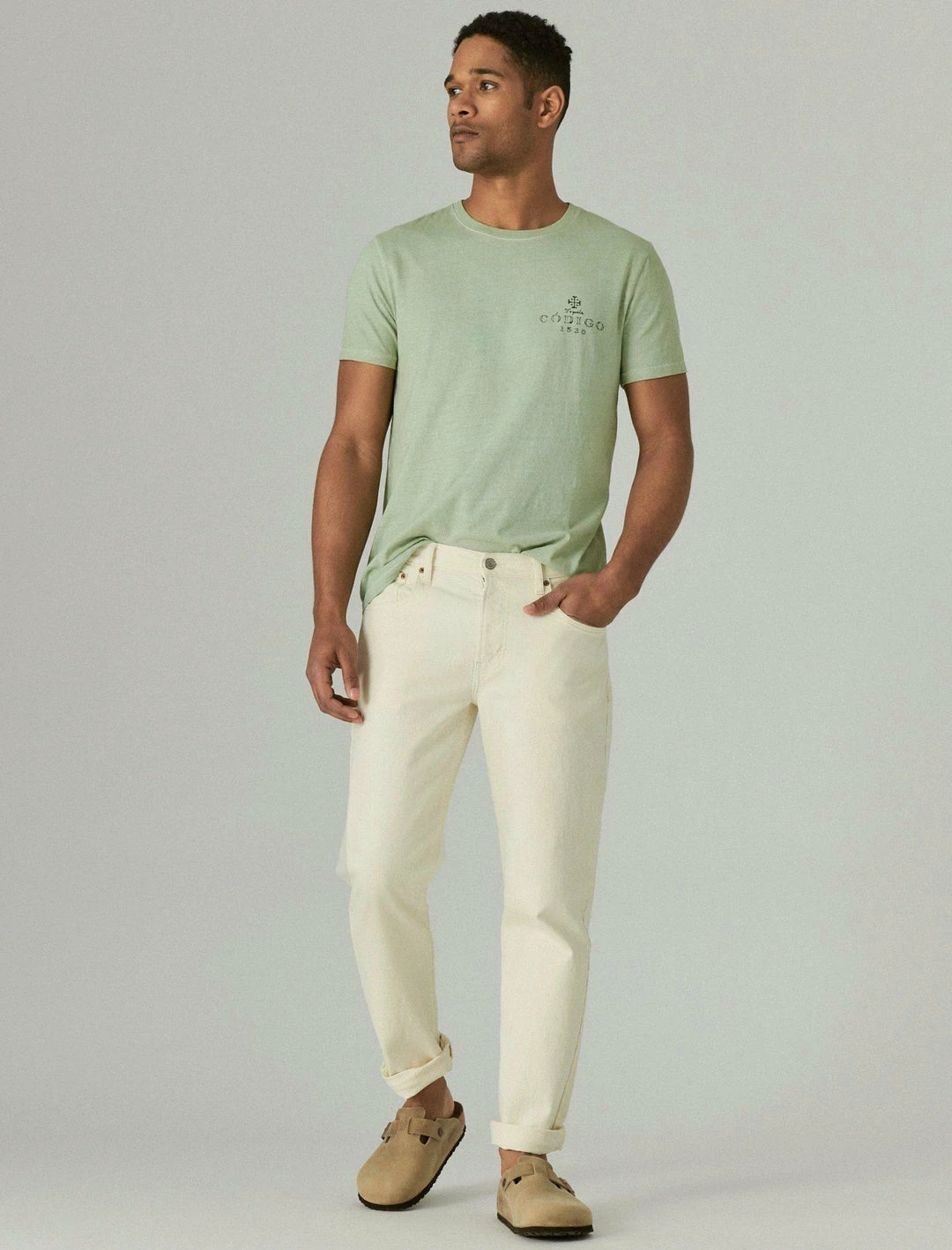 The faded-wash and branded collab graphics make this crewneck tee the perfect go-to style for catching up with friends or lounging out at home. From our limited edition Codigo 1530 x Lucky Brand Spring capsule collection, this t-shirt is crafted with FAXEL Eco Yarn, a recycled cotton fiber generated from cutting waste and leftover fabric spun together with virgin cotton fiber.Crew neck. Short sleeves. 50% Recycled Cotton, 50% Virgin Cotton