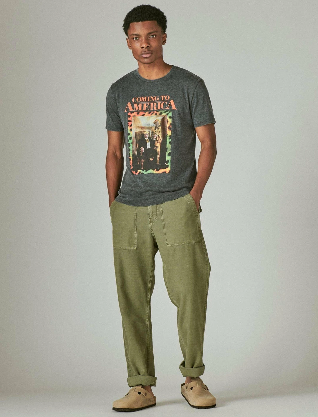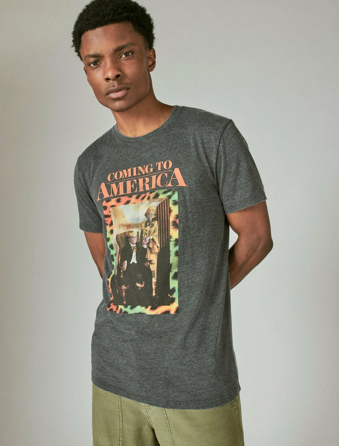 Cut for a classic fit, this short sleeve tee features a framed Coming to America graphic at the front in a super soft cotton blend fabrication.Crew neck. Short sleeves