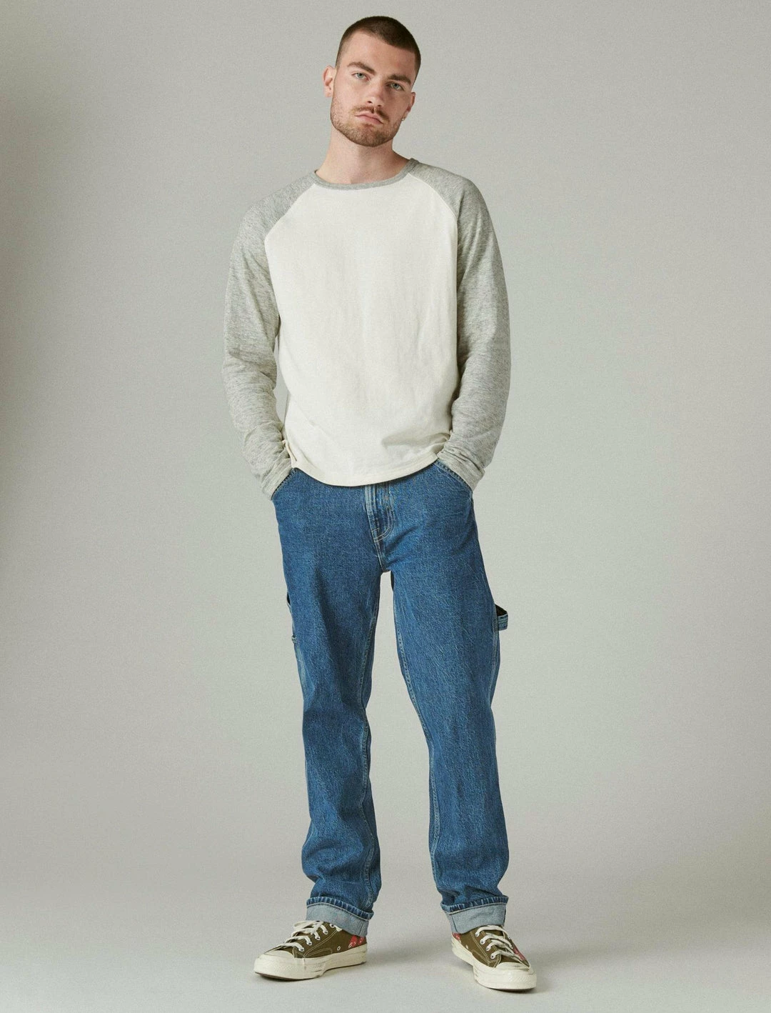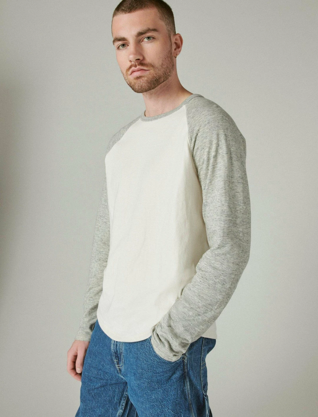 Make yourself comfortable in this baseball-style tee cut from soft cotton with long sleeves.Crew neck. Long sleeves
