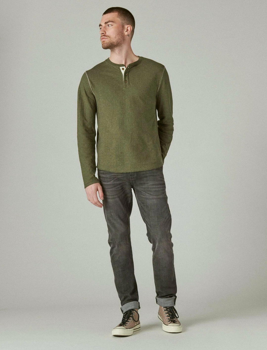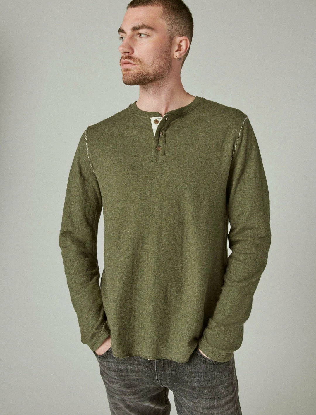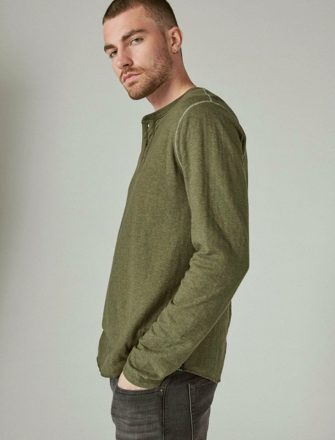Made of 100% cotton, this wear-everywhere long sleeve henley pairs perfectly with your favorite Lucky jeans for an authentically-you look.Crew neck with partial button closure. Long sleeves