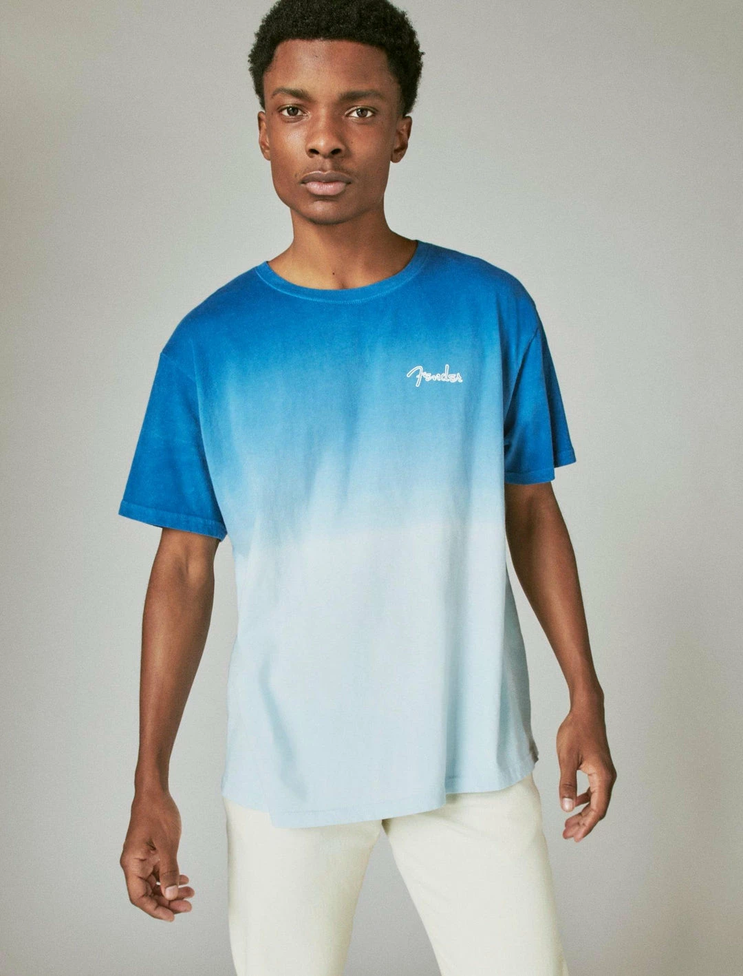 Made of soft cotton, this ombre crewneck tee features Fender graphics at the front and back for a perfectly laid-back look. Pair with jeans or shorts to complete the look.Crew neck. Short sleeves
