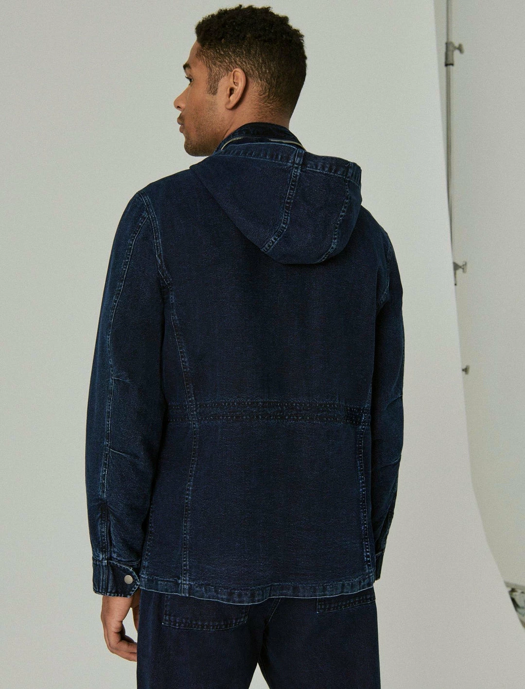 A balanced mix of functionality and versatility, this indigo jacket features classic detailing like four front pockets and a boxy silhouette inspired by the original M-65 worn in the 1960s. With plenty of room for layering, this style is ready to pair with easy graphic tees, textured knits and everything in between.Button-and-zip closure. Packable zip hood. Front flap pockets. Button cuffs