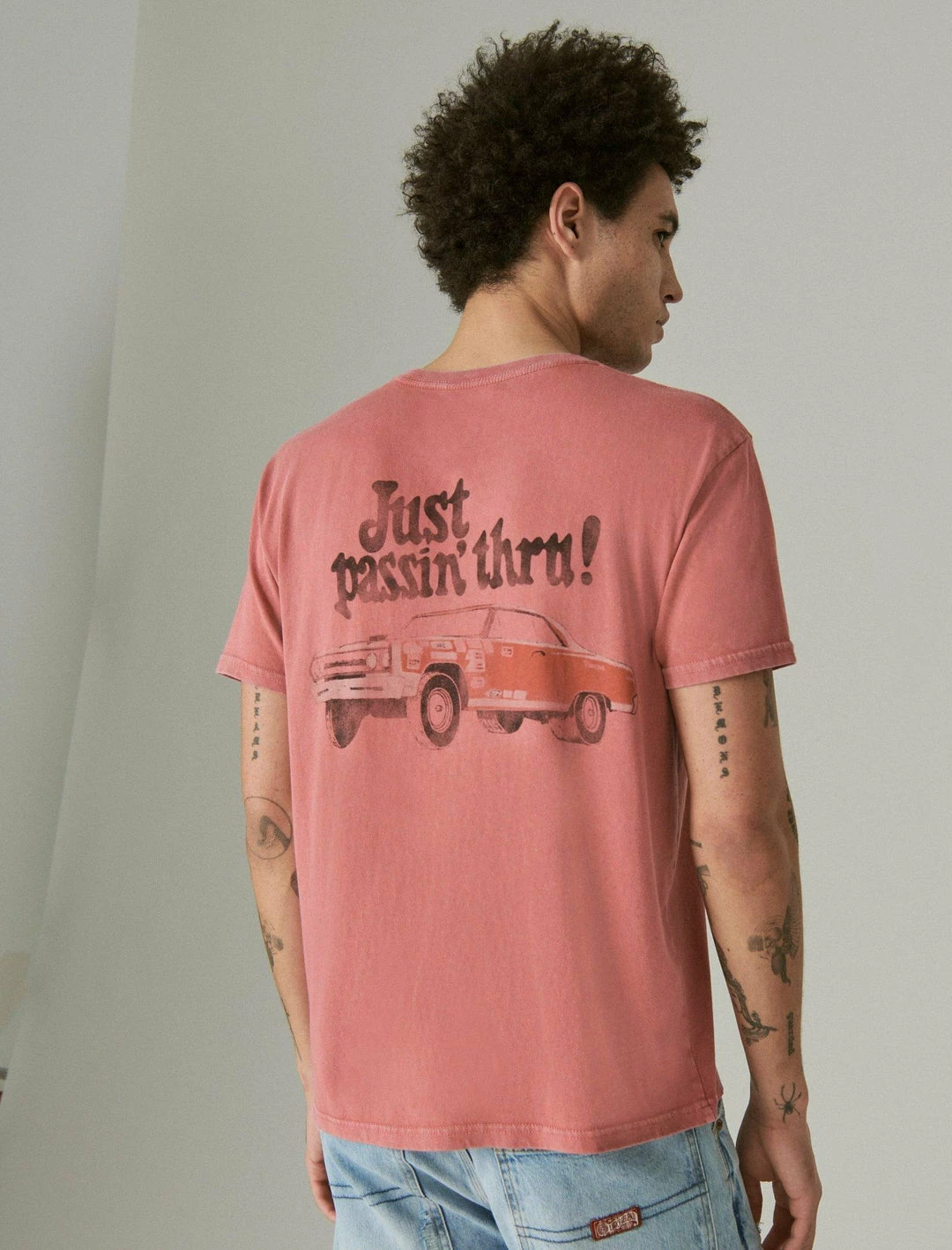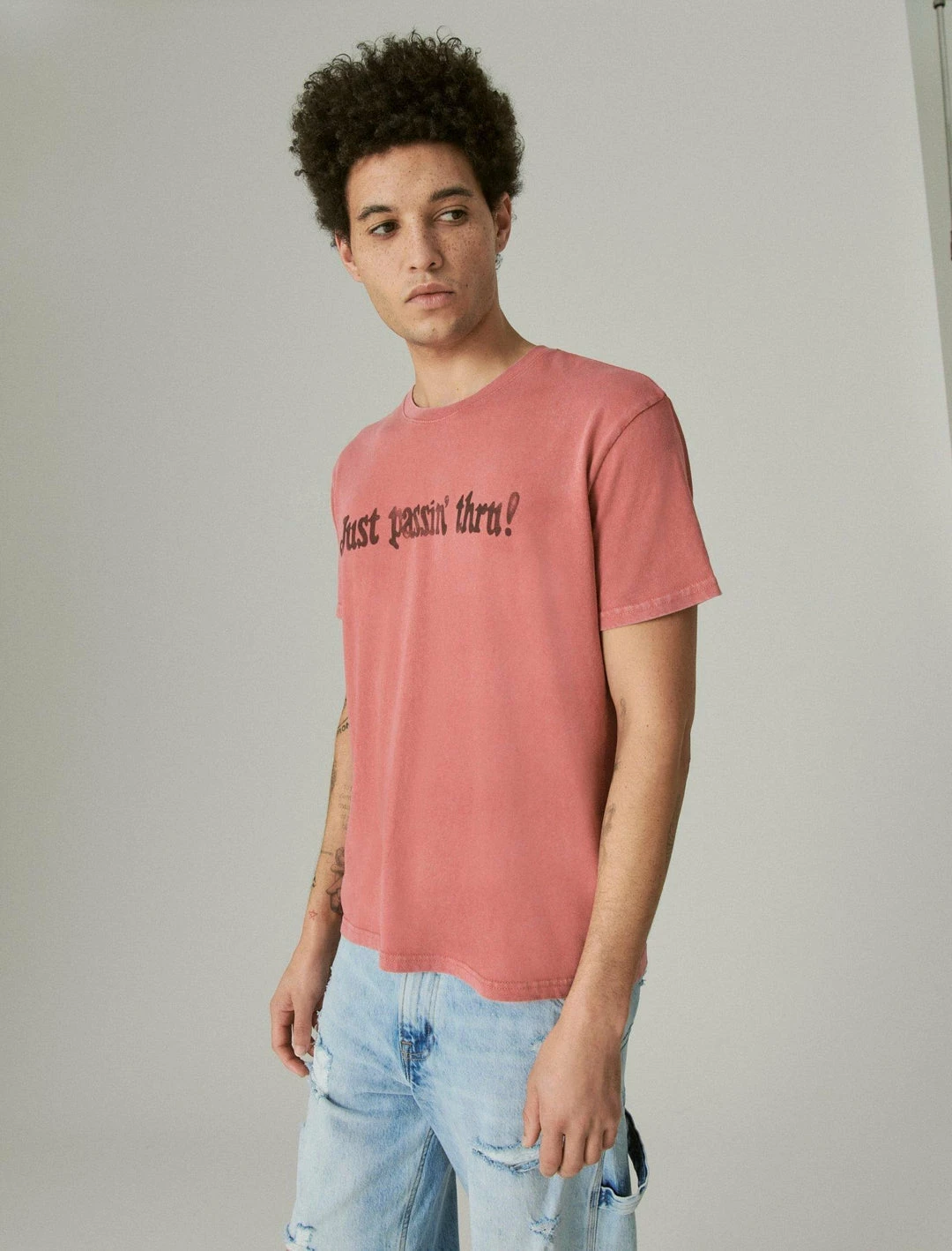 Keep it moving with this vintage-wash Just Passin Thru graphic tee crafted of soft 100% cotton. Style with distressed denim for your own authentic, laid-back look.Crew neck. Short sleeves