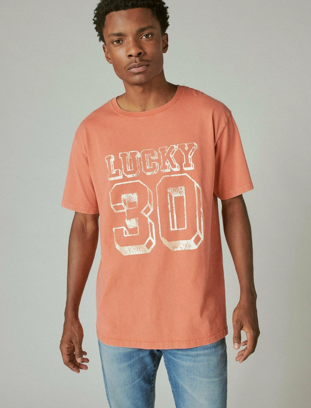 Attract luck wherever you go wearing this Lucky 30 graphic t-shirt, crafted from a feel-good cotton jersey blend for a soft hand feel you’ll want to wear all day.Crew neck. Short sleeves