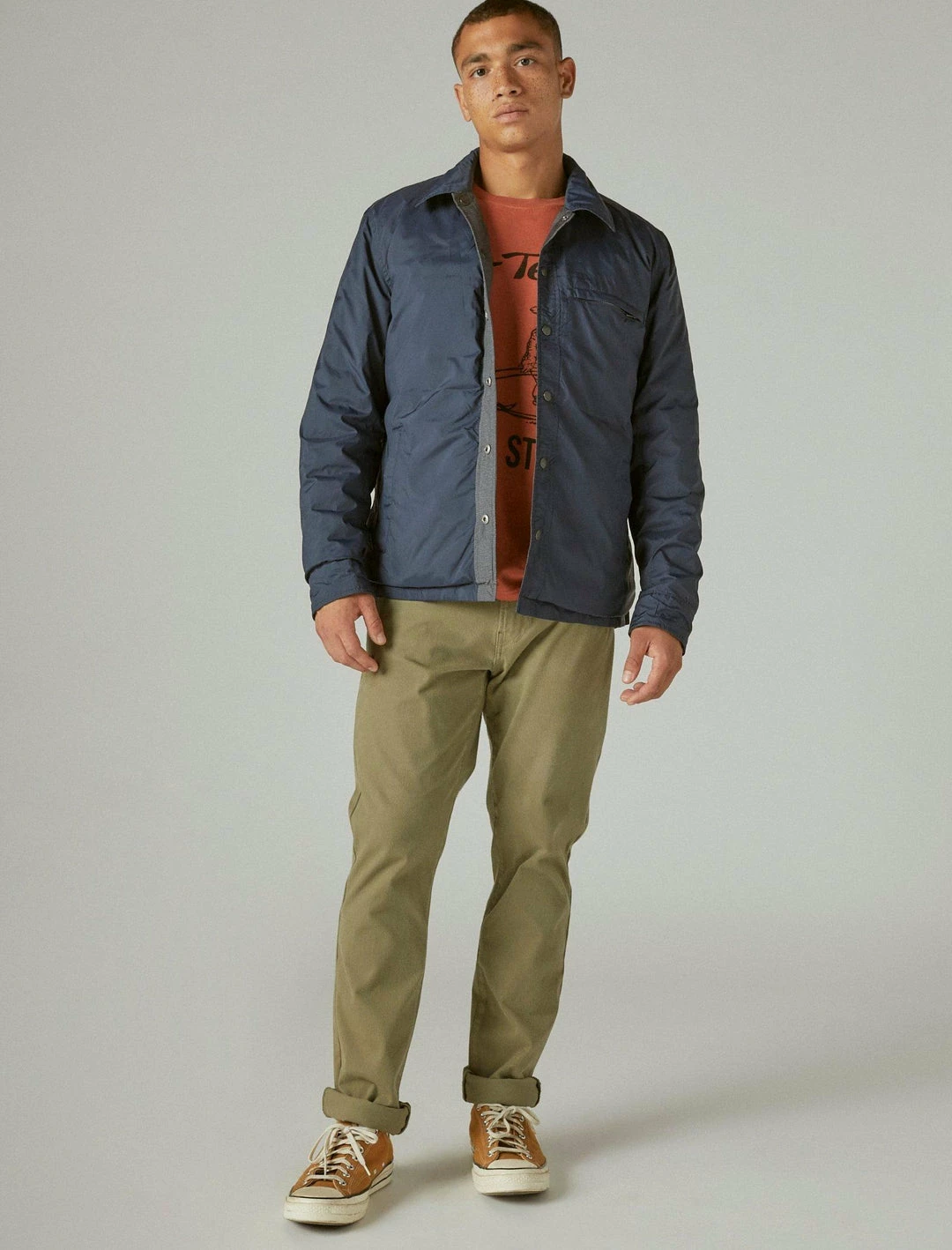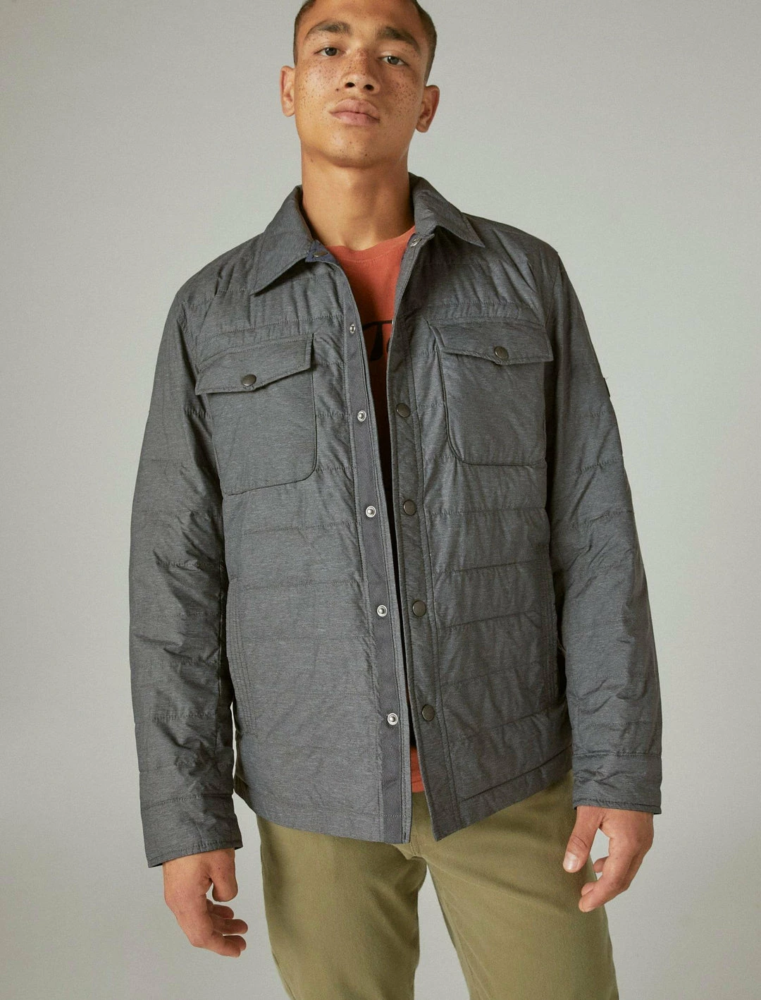 Get two looks in one with this reversible nylon puffer shirt jacket featuring button-down styling, spacious chest pockets and a Lucky logo patch at the arm. Pair with contrasting chinos and your favorite Lucky graphic tee.Button closure with a spread collar. Snap-close chest pockets and side slant pockets. Fully lined