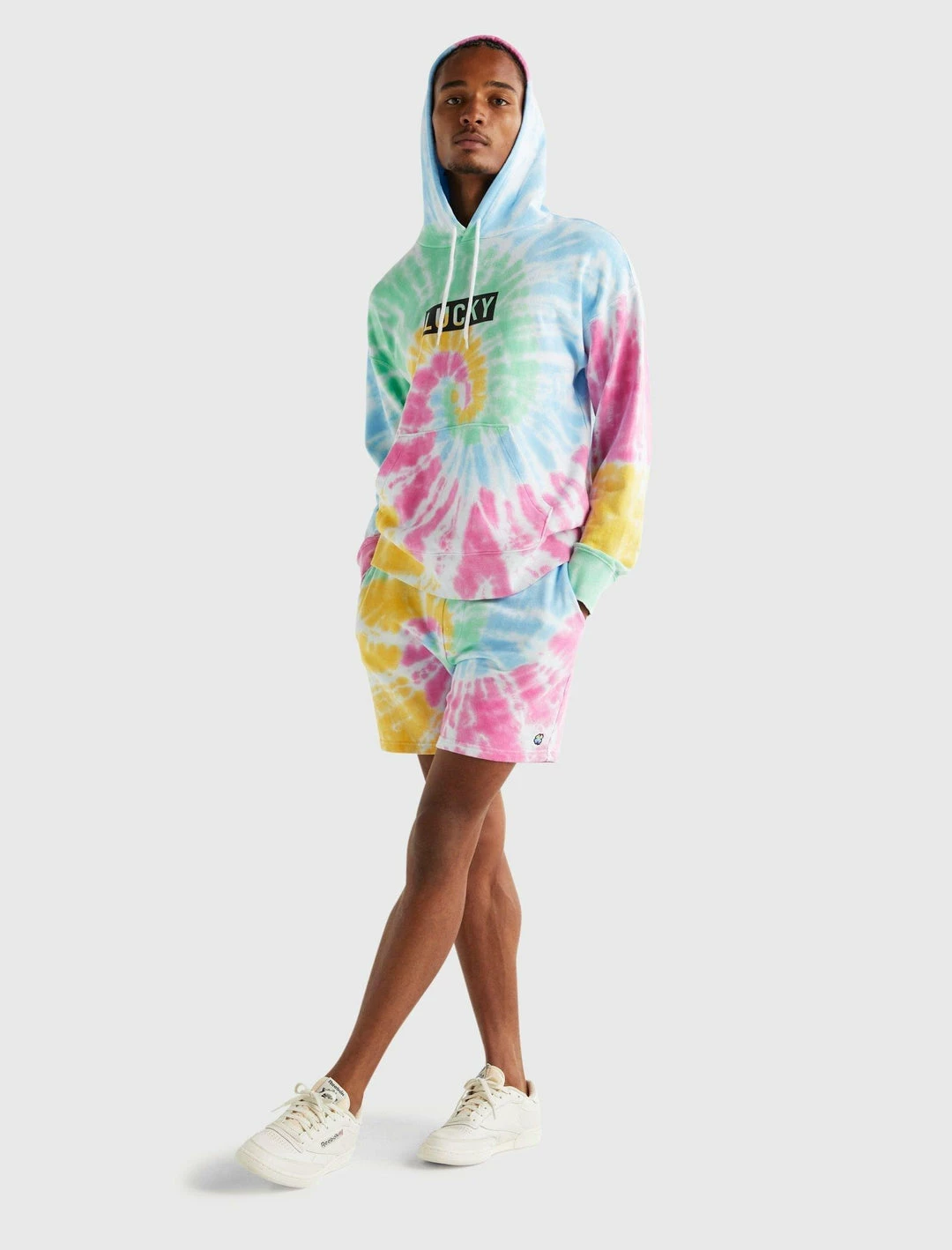 Make a splash this summer in these rainbow tie dye shorts from our limited edition Pride Capsule collection, crafted from a soft and smooth cotton dyed in summer colors with an embroidered Lucky clover patch.Elastic waistband with drawstring. Side slant pockets