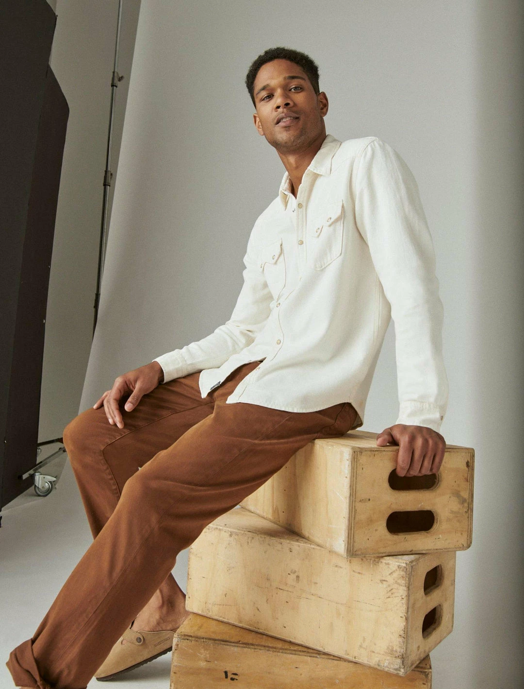 This long sleeve shirt takes inspiration from the west with classic button-down styling, a traditional spread collar and two double-button sawtooth pockets. This shirt is made with hemp, a super strong and durable natural fiber that requires far less water and fewer pesticides to produce.Button-down with spread collar. Long sleeves. Button cuffs. Button-close chest pockets. Made with naturally strong and durable Hemp