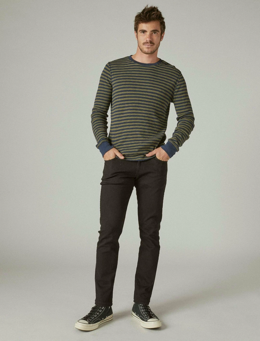 Make your first layer your best one with this striped vintage-washed thermal long-sleeve crew featuring a slightly ribbed texture and frayed hem.Crew neck. Long sleeves