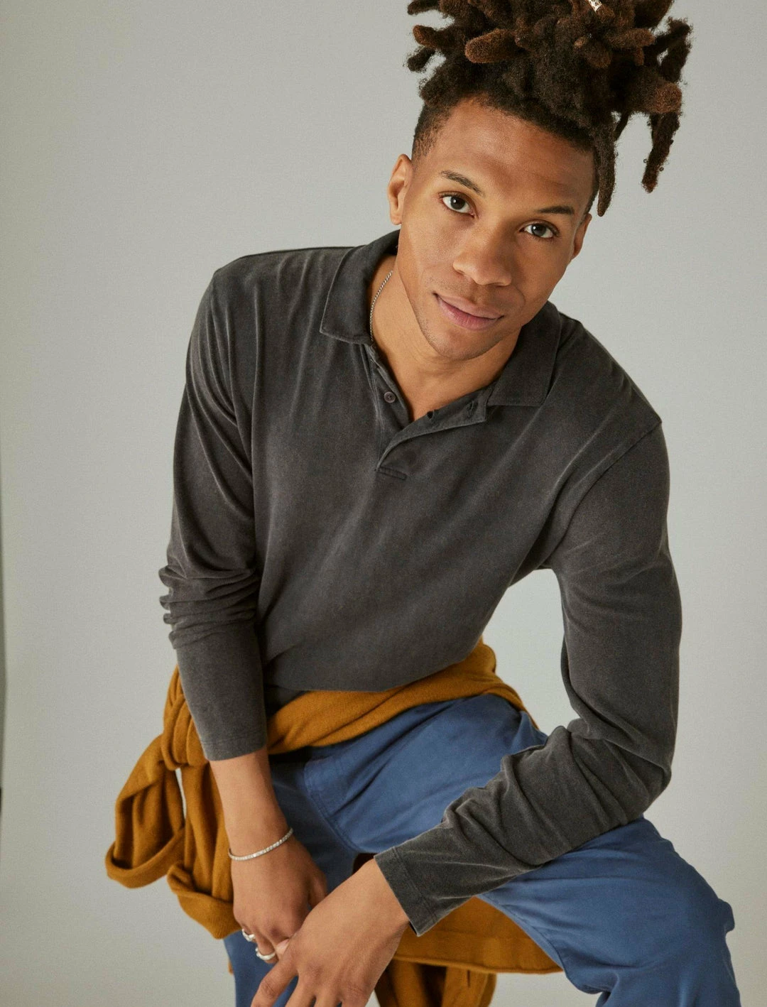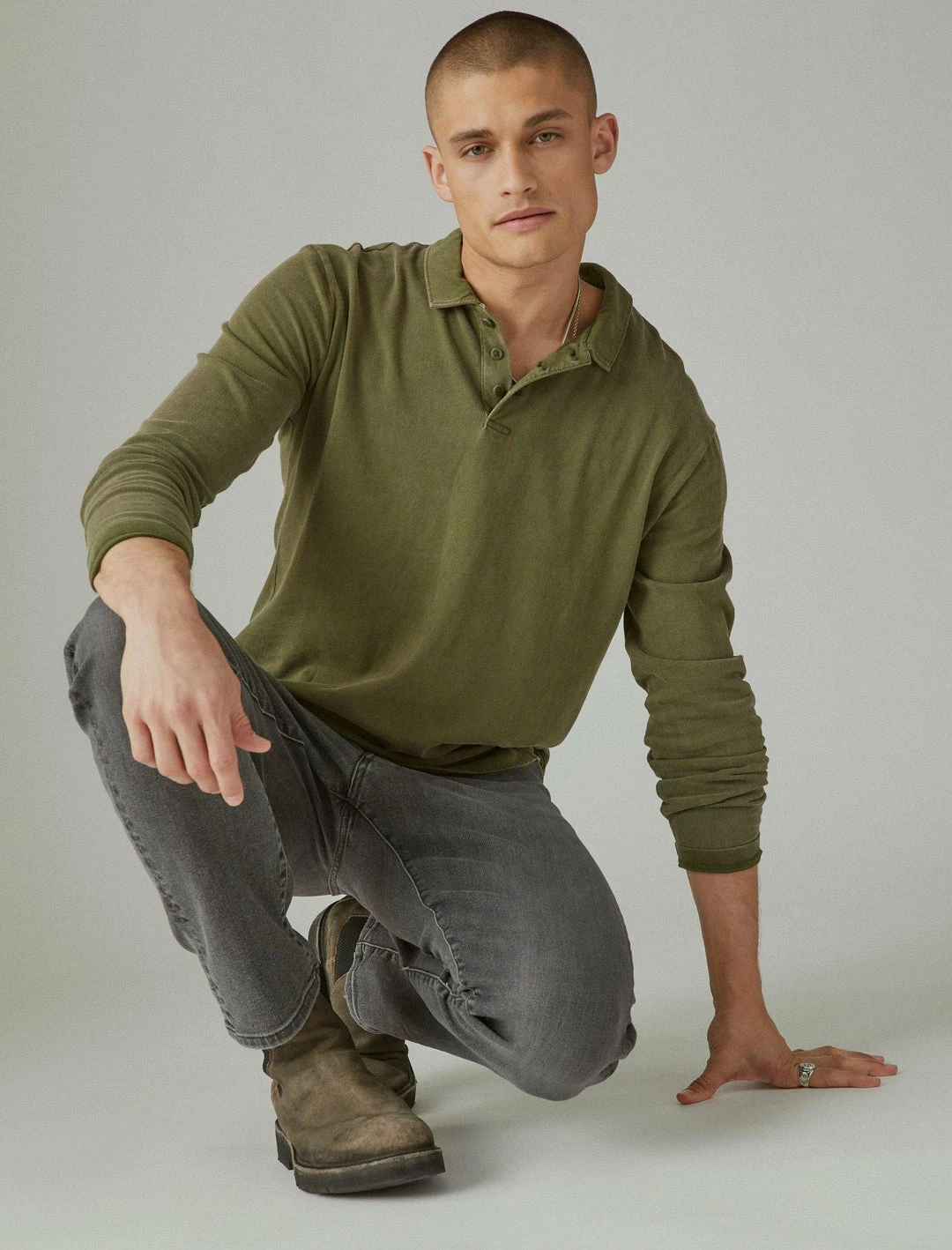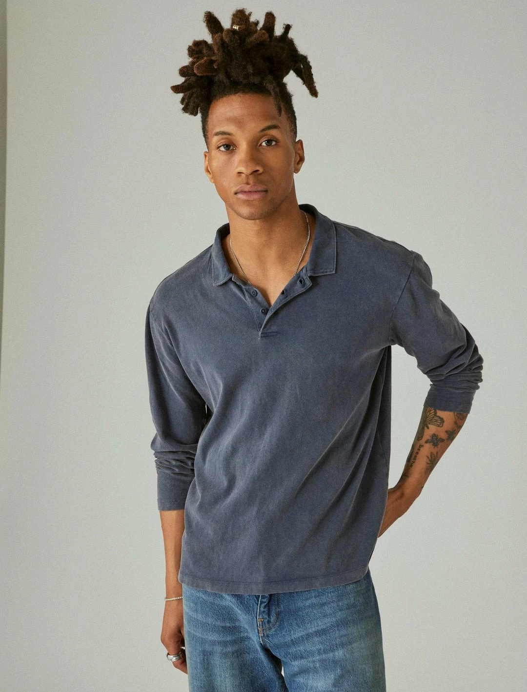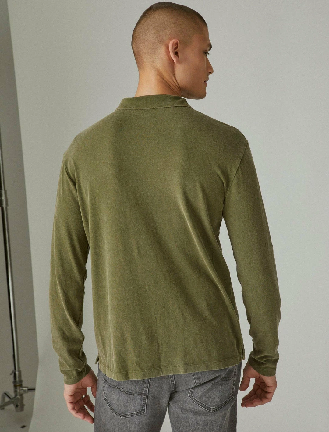Crafted in our signature-soft sueded cotton-jersey, this long sleeve polo captures the style and feel of a perfectly worn-in look in a range of vintage washes you love.Spread collar with button placket. Long sleeves. Side-slit hem