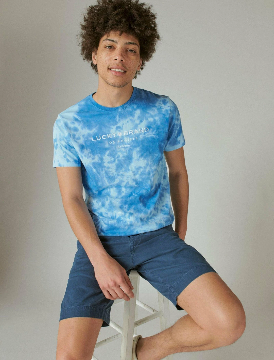Bold in blue tie-dye print, this crewneck tee features our logo graphic at the chest in soft 100% cotton for comfortable everyday wear.Crew neck. Short sleeves