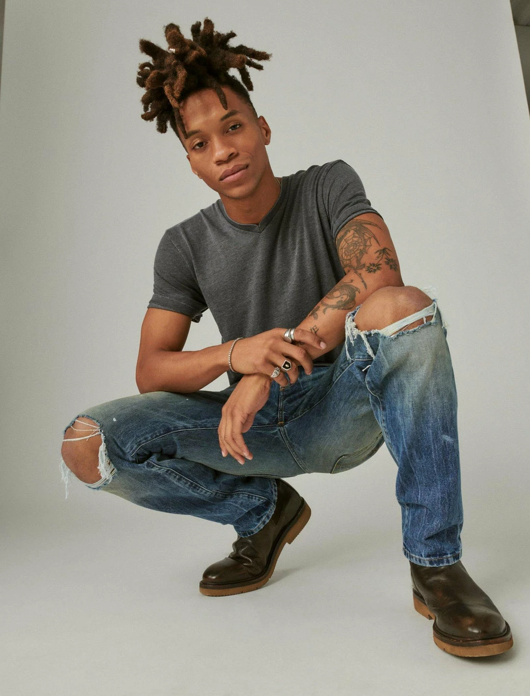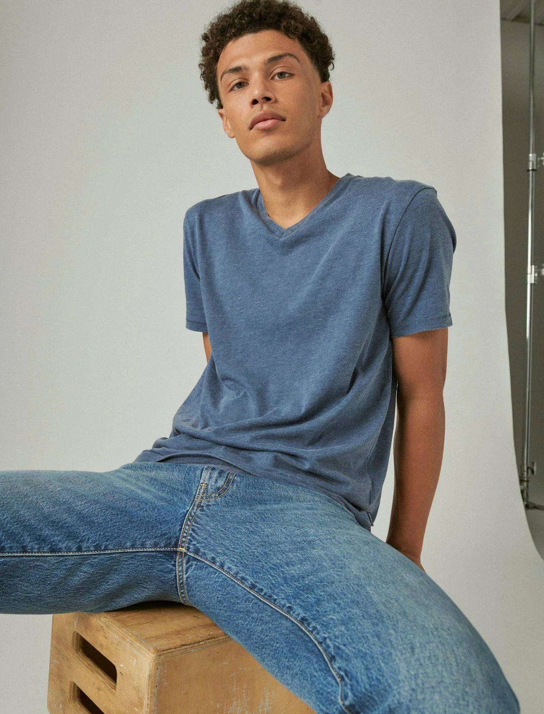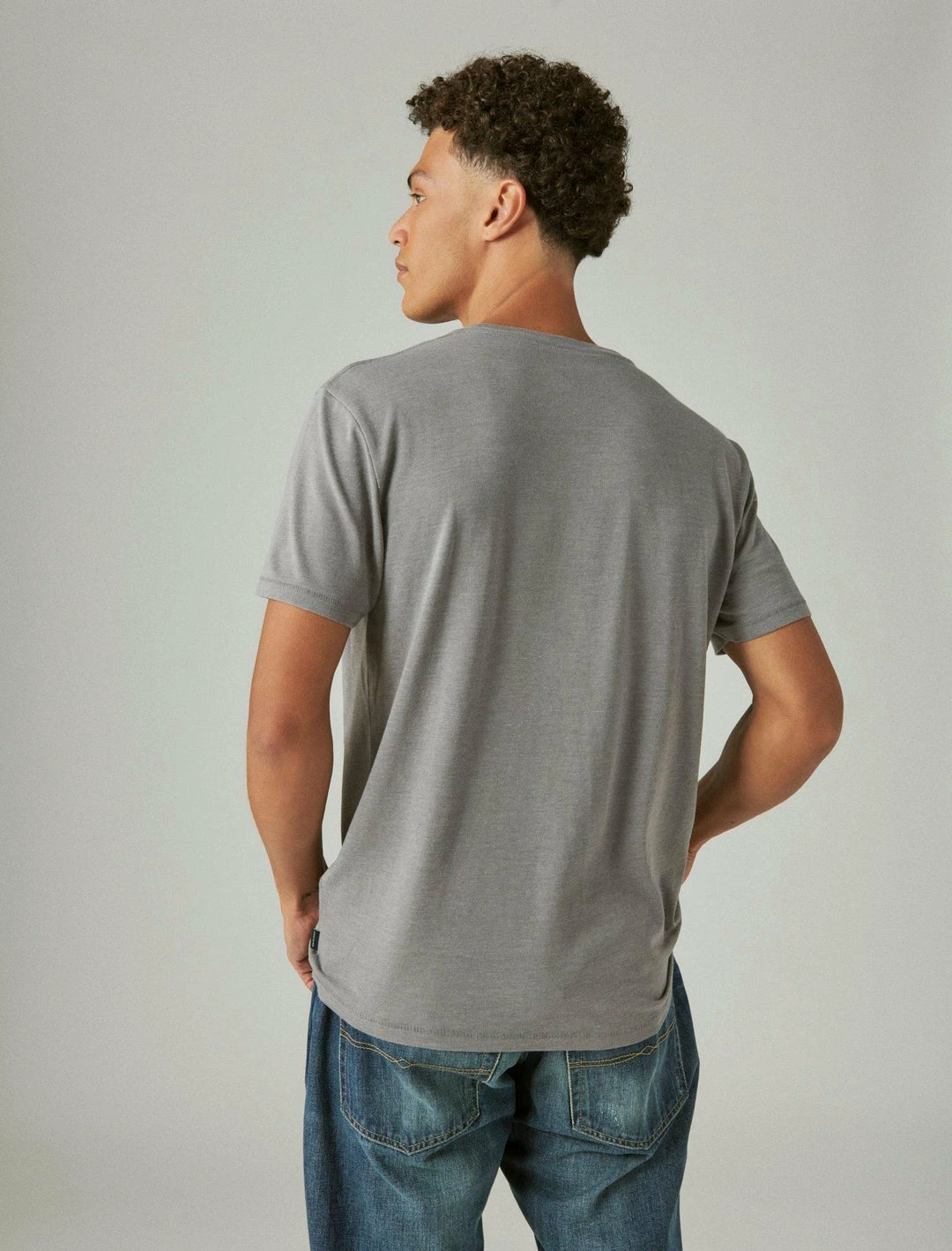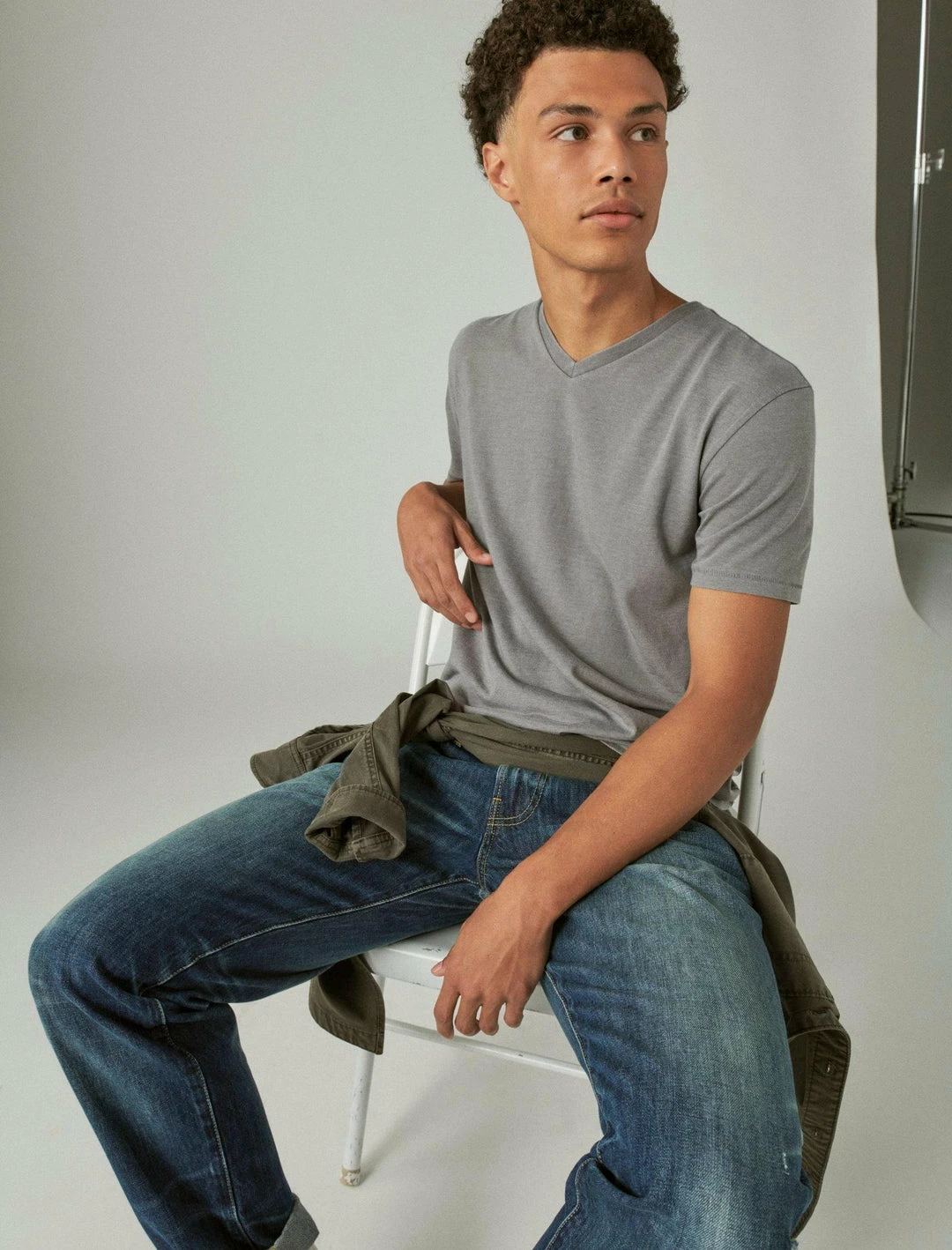 Designed in a vintage wash, this soft cotton-blend T-shirt is cut for a relaxed-fit and features a V-neck. Wear with your favorite pair of Lucky jeans. V-neck. Short sleeves