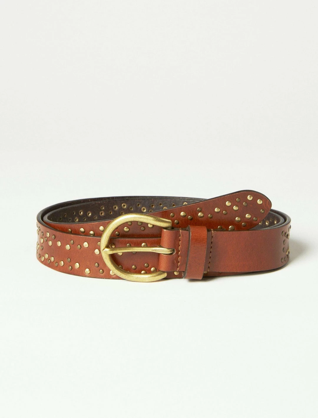 Embellished with round golden studs, this skinny brown leather belt adds the perfect finishing touch to all your casual looks. Use yours to cinch the waist of a flowy dress or loop through your favorite pair of Lucky jeans.100% leather. Width – 29mm