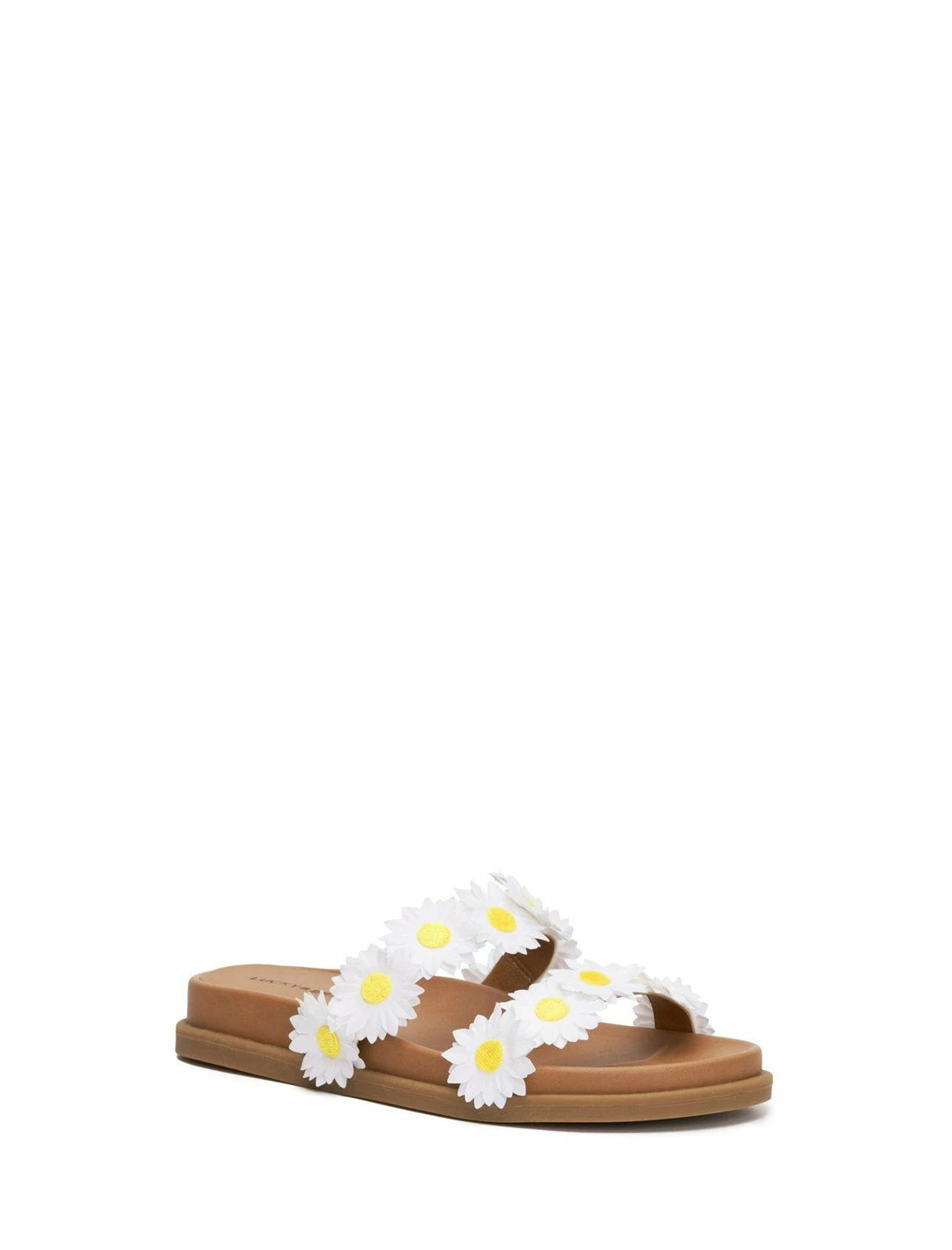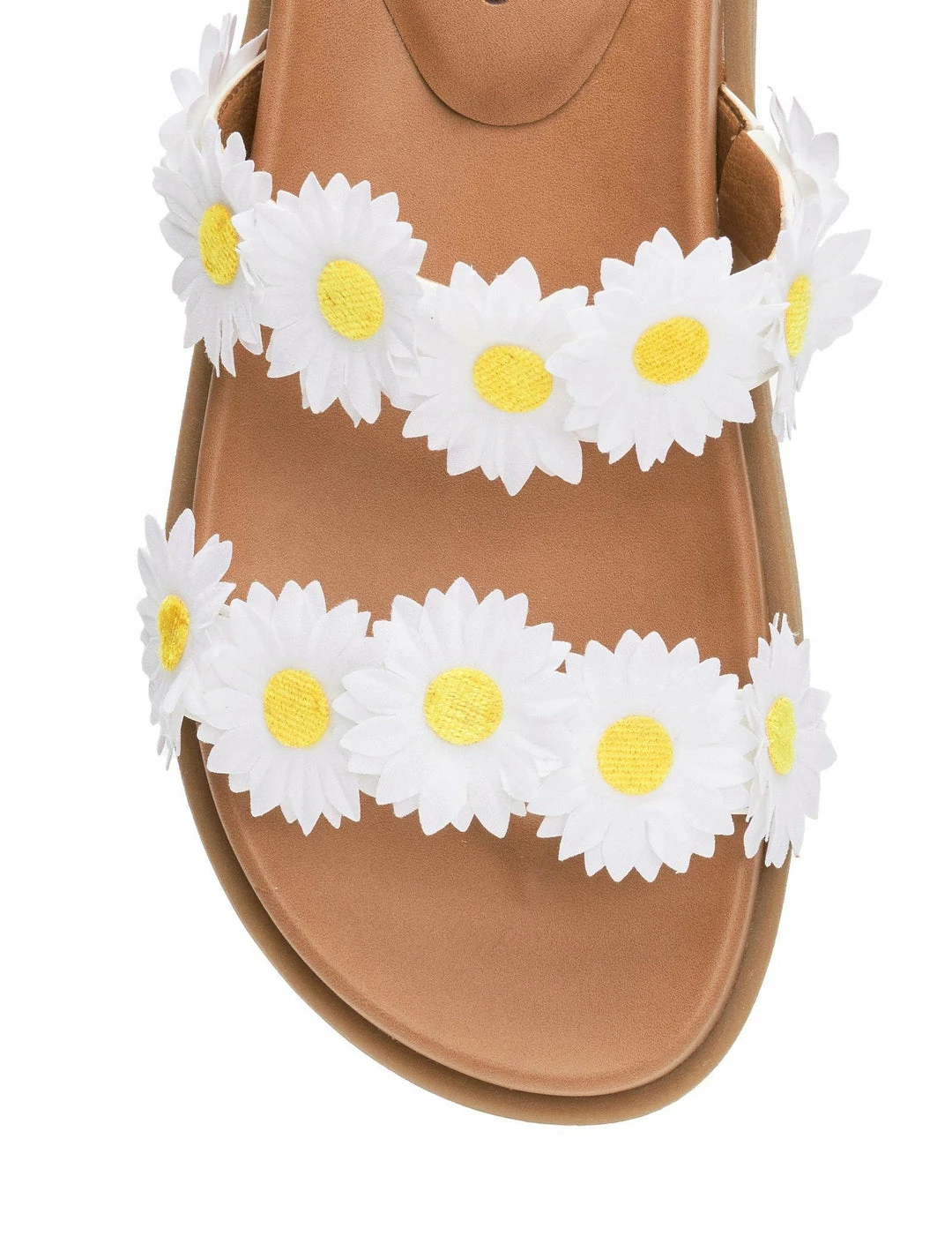 Designed with dual daisy-embellished straps, the Pallyon sandal elevates all your warm-weather ensembles. Complete with a comfy footbed, this slip-on style is destined to become your new go-to shoe.Round open toe. Slip-on. 2 1. 2″ wedge heel. Fabric upper. Rubber sole
