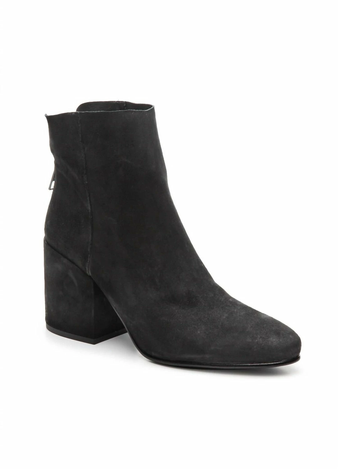 Leather or suede upper. Back zip closure. Round toe. Faux leather lining. Cushioned footbed. Synthetic sole