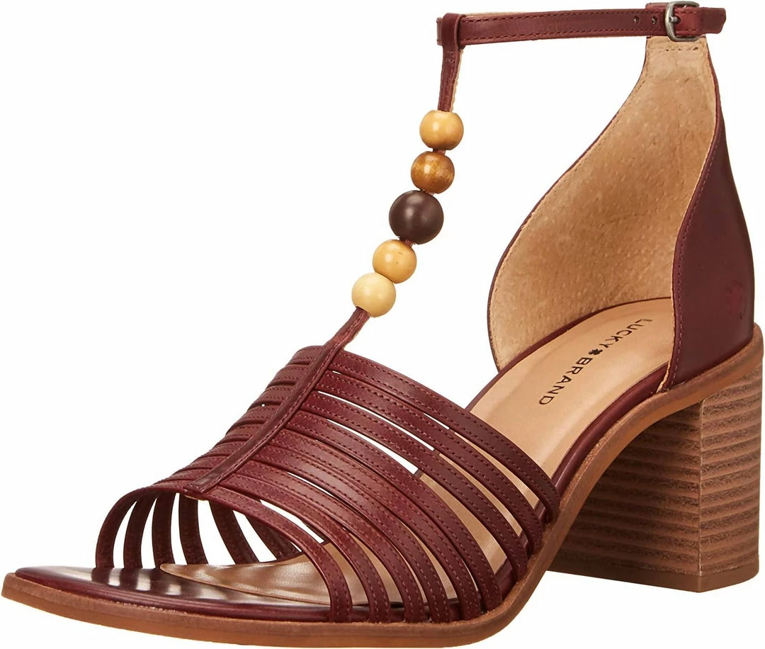 This T-strap sandal features eye-catching beaded strap detailing, adjustable buckle to enable easy wear and stacked block heel for a charming lift.