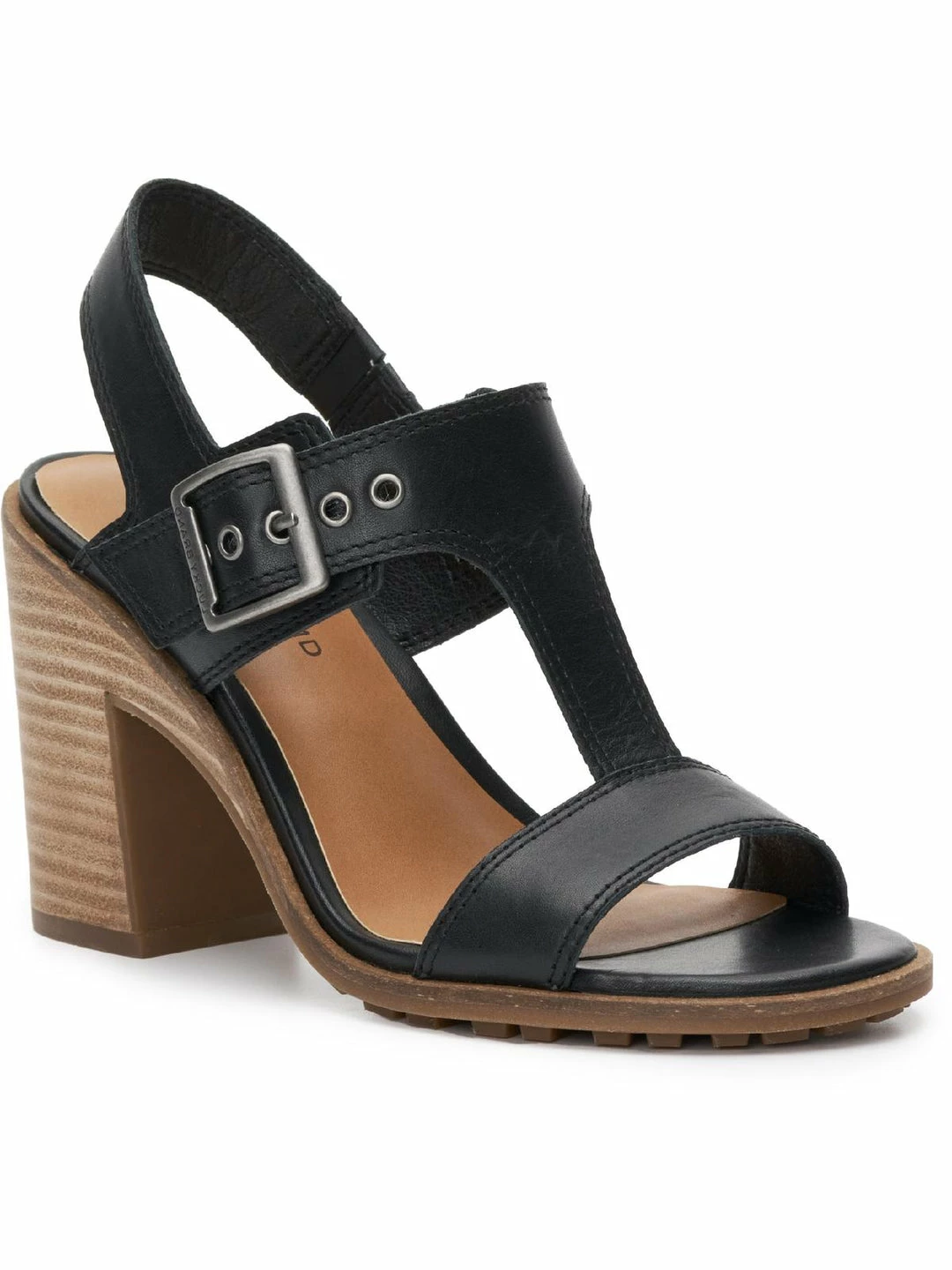 Dress up your warm weather look in the Vidany heeled sandal by Lucky Brand. Made of leather uppers with textile lining. Slingback strap with adjustable buckle closure. Stacked block heel measures 4″ & platform measures .5″. Rubber outsoles.