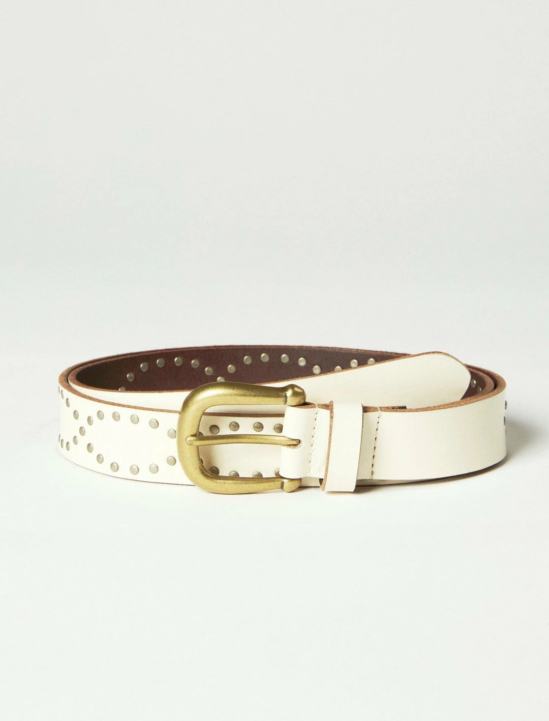 Enliven any look with this timeless white leather belt embellished with round studs and a sturdy buckle for true American style.100% leather. Width – 29mm