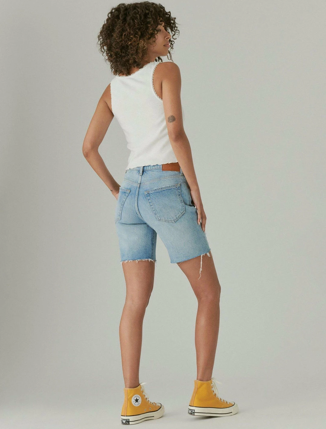 A vintage-inspired high rise with a touch of stretch, our 90s Loose Short features a longer-length inseam and relaxed fit for comfortable, everyday wear. Finished with a frayed cut hem and distressed details, this vintage-wash pair looks great worn with a crop top or graphic t-shirt.High rise with a relaxed fit. Distressed light wash denim. Comfort stretch with just the right amount of give. 5-pocket styling with button-and-zip fly. 7″ inseam