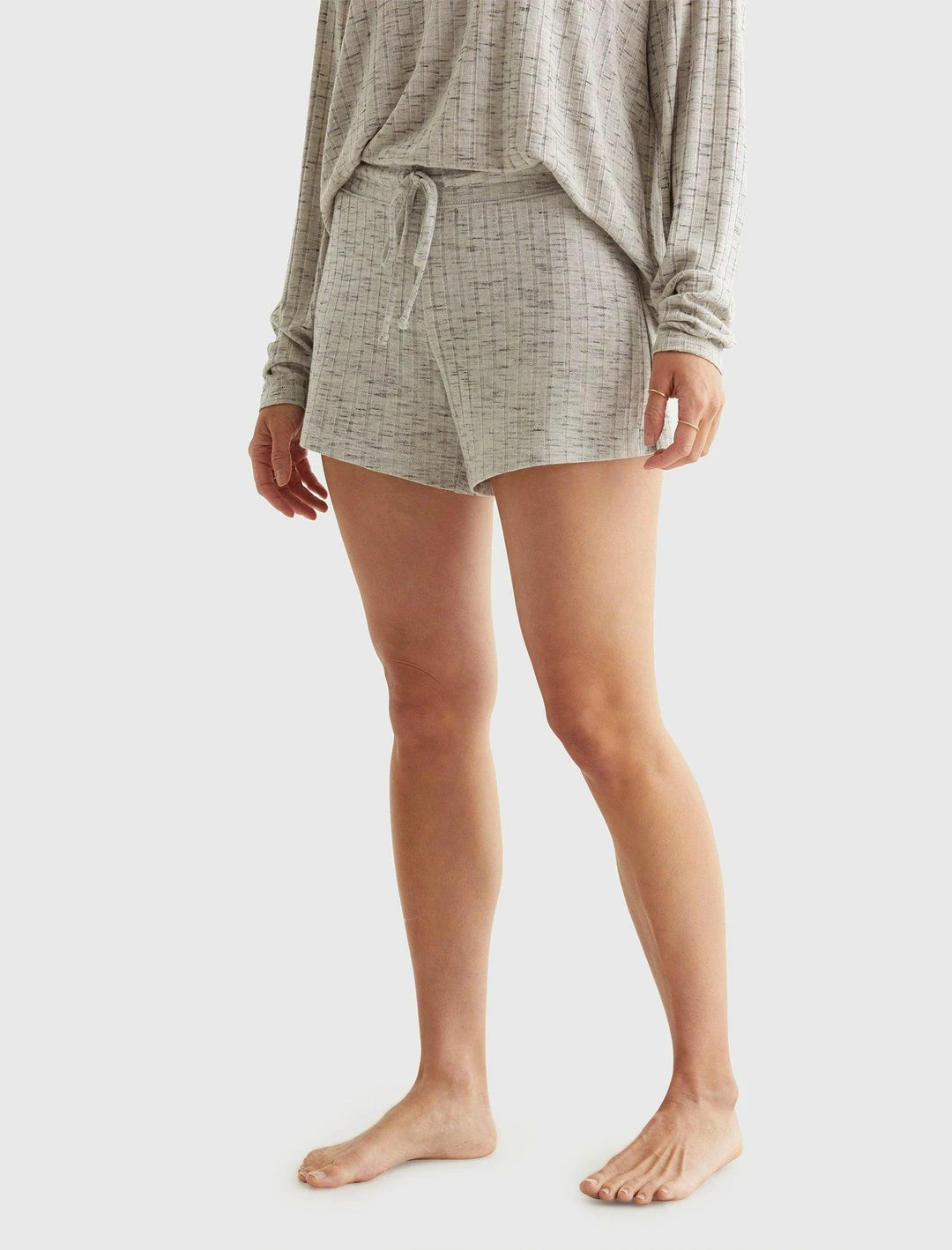 Whether you’re out and about or lounging around, these ultra-soft silhouette-hugging hacci rib shorts balance the perfect amount of stretch with active summer style.Elastic waist. Adjustable drawstring