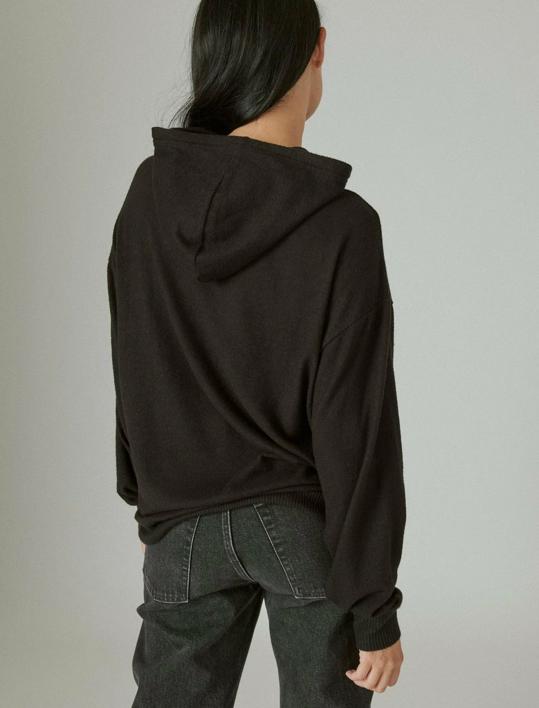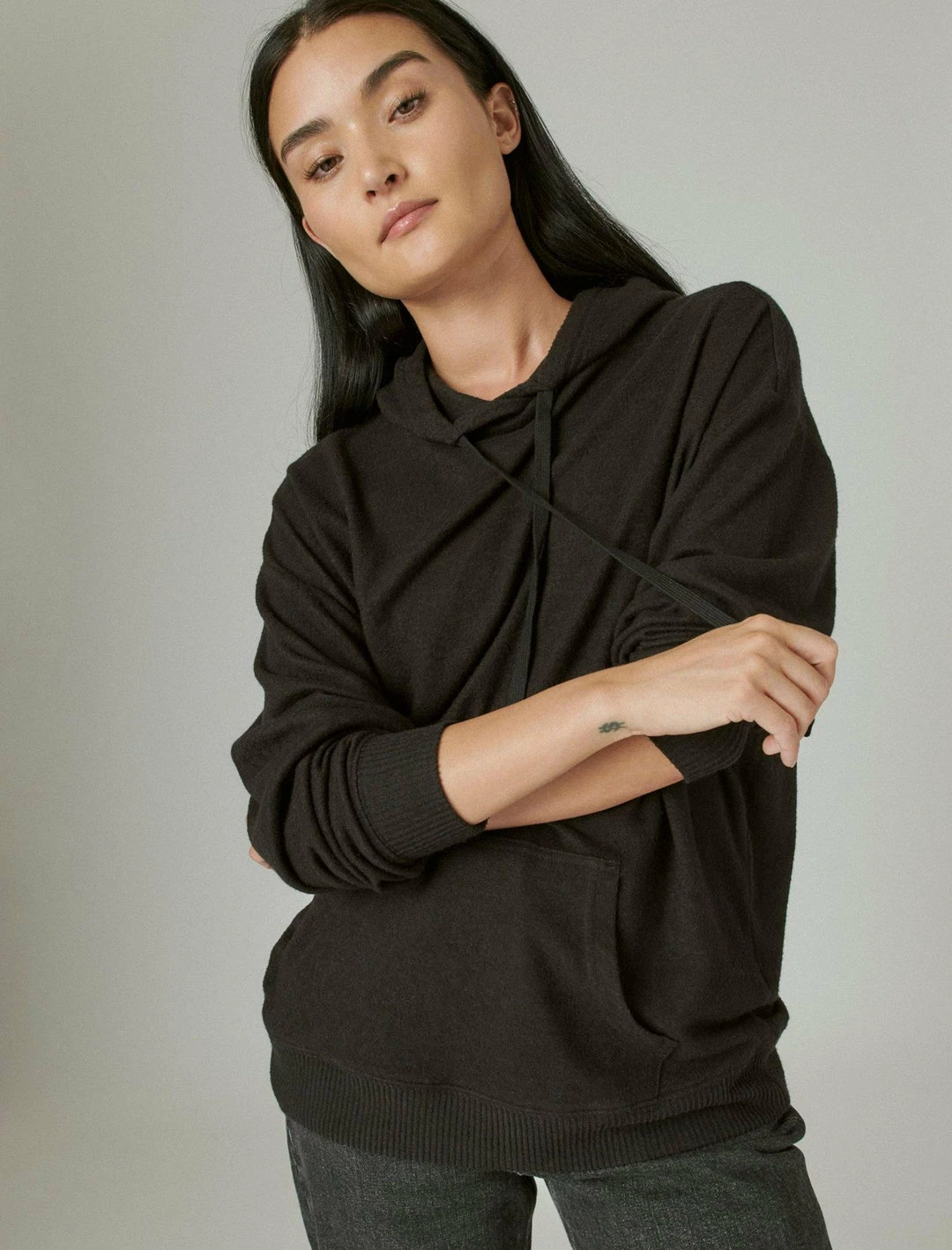 Take the chill vibes with you wherever you go in this timeless soft cloud jersey hoodie made with a textured knit with a hint of stretch and easy adjustable drawstring at the neck. Throw it over your favorite Lucky tee on cool fall nights.Drawstring hood. Long sleeves