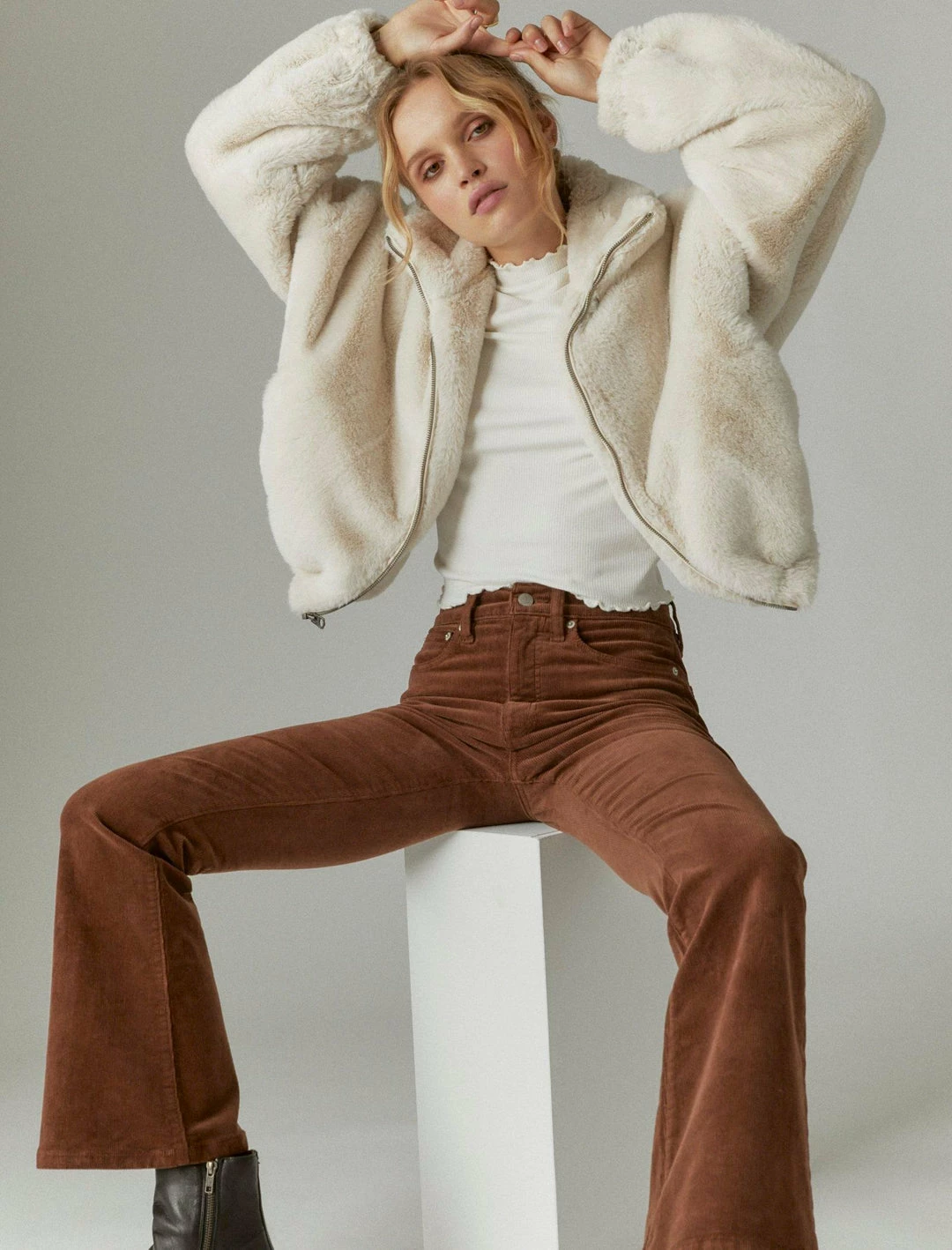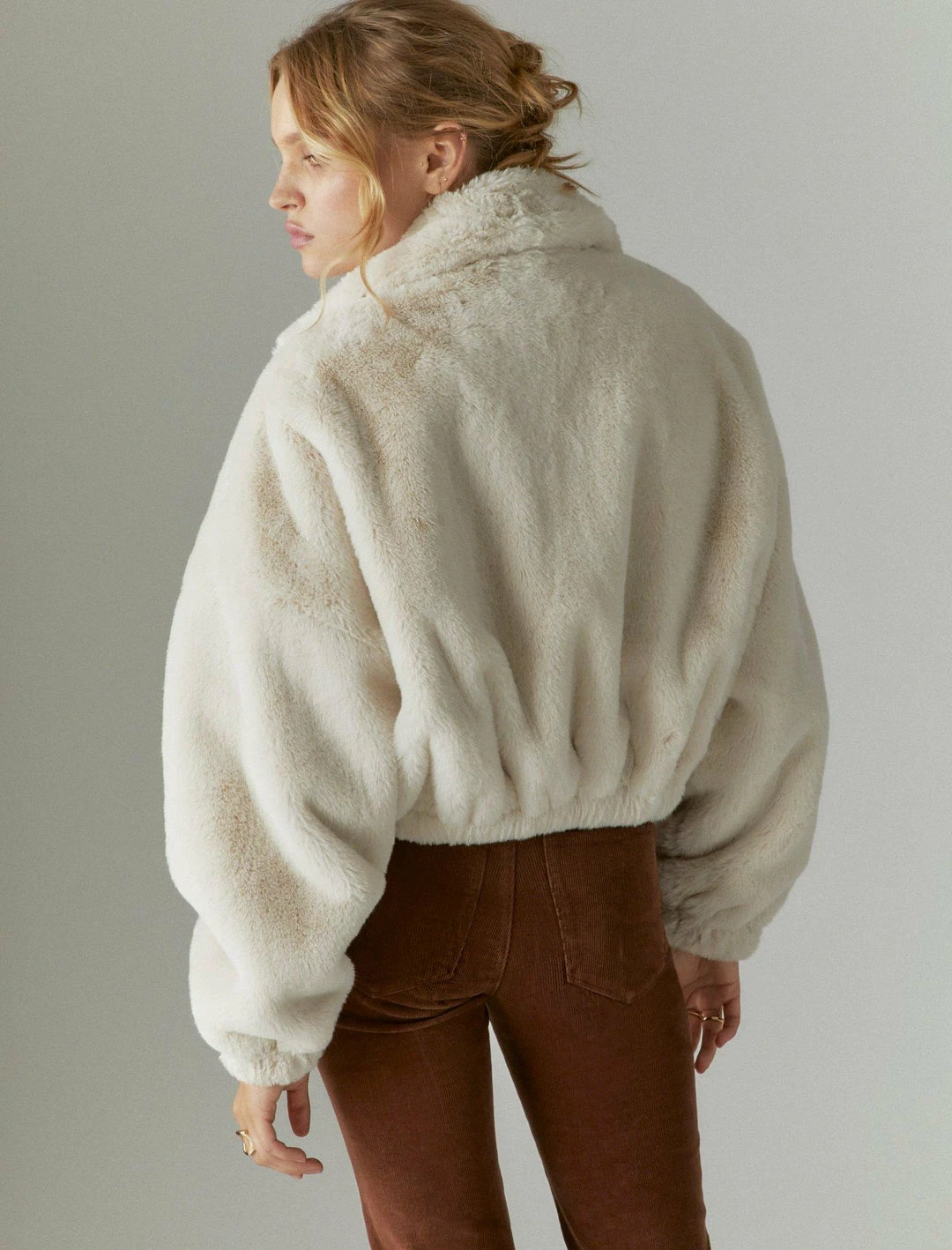 Cozy meets cool with this on-trend bunny jacket. Cut from soft faux shearling, this cozy style features a full-zip front, side pockets and an elastic hem.Full-zip closure. Side pockets. Elastic cuffs and hemuFaux Shearling. uAn important note on the use of a culturally appropriated term in this product description – Lucky Brand has replaced the term Sherpa with Faux Shearling as part of our company-wide effort to remove culturally appropriated designs, terms, and names from current and future products. Sherpa refers to an indigenous people native to Tibet and Nepal in the eastern Himalayas of Central Asia.