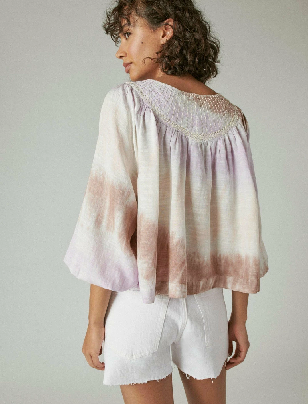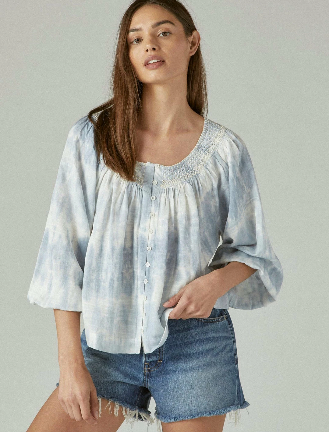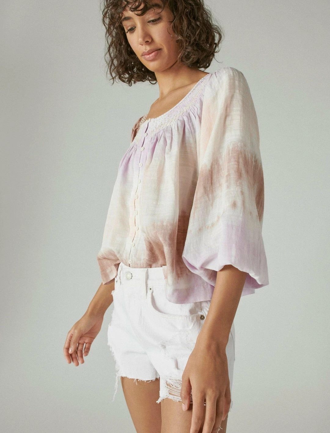 So sweet and airy, this loose-fit peasant blouse crafted of soft cotton-modal features embroidery at the chest and back with button-up styling for the perfect spring or summer look.Scoop neck with button-down closure. Long sleeves. Elastic cuffs