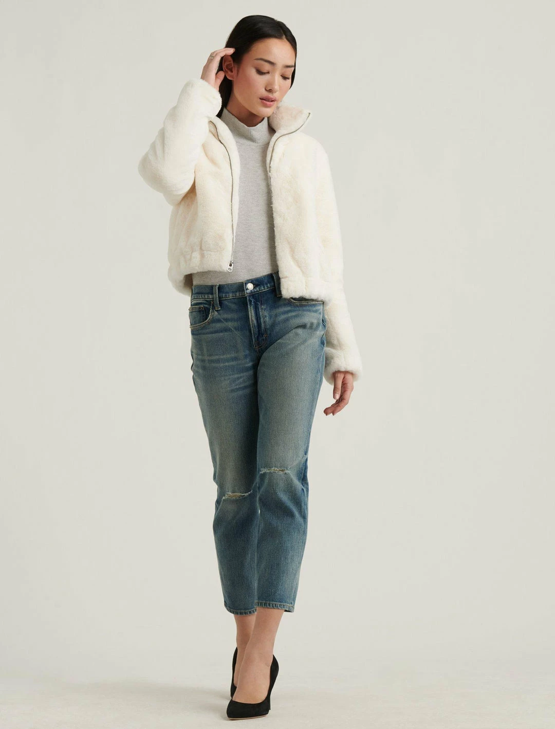 Ethical and super-soft; what are you waiting fur? This cushy comfy coat resembles the upper-class metro style of yesteryear but with a modern heart heart for furry friends. Now that’s real class.Long sleeves. Zipper. Pockets