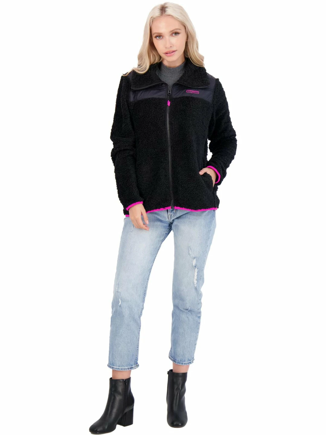 Stay toasty in this faux shearling colorblock jacket by Lucky Brand. Made with 100% polyester. This jacket is crafted with soft faux shearling fabric and a mixed media design. Lightweight and cozy, this jacket will be a go to for everyday wear. It features a stand collar to protect your neck from the cold. Full zipper closure. Contrast trim details. This jacket is guaranteed authentic.