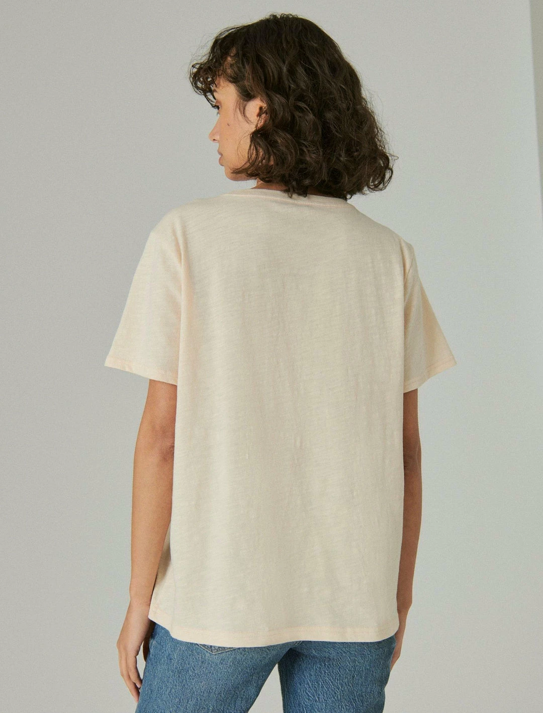 The faded-wash and super-soft hand feel of this cotton crewneck tee make it perfect for pairing with high-waisted jeans and a trucker jacket for the ultimate lived-in look.Crew neck. Short sleeves