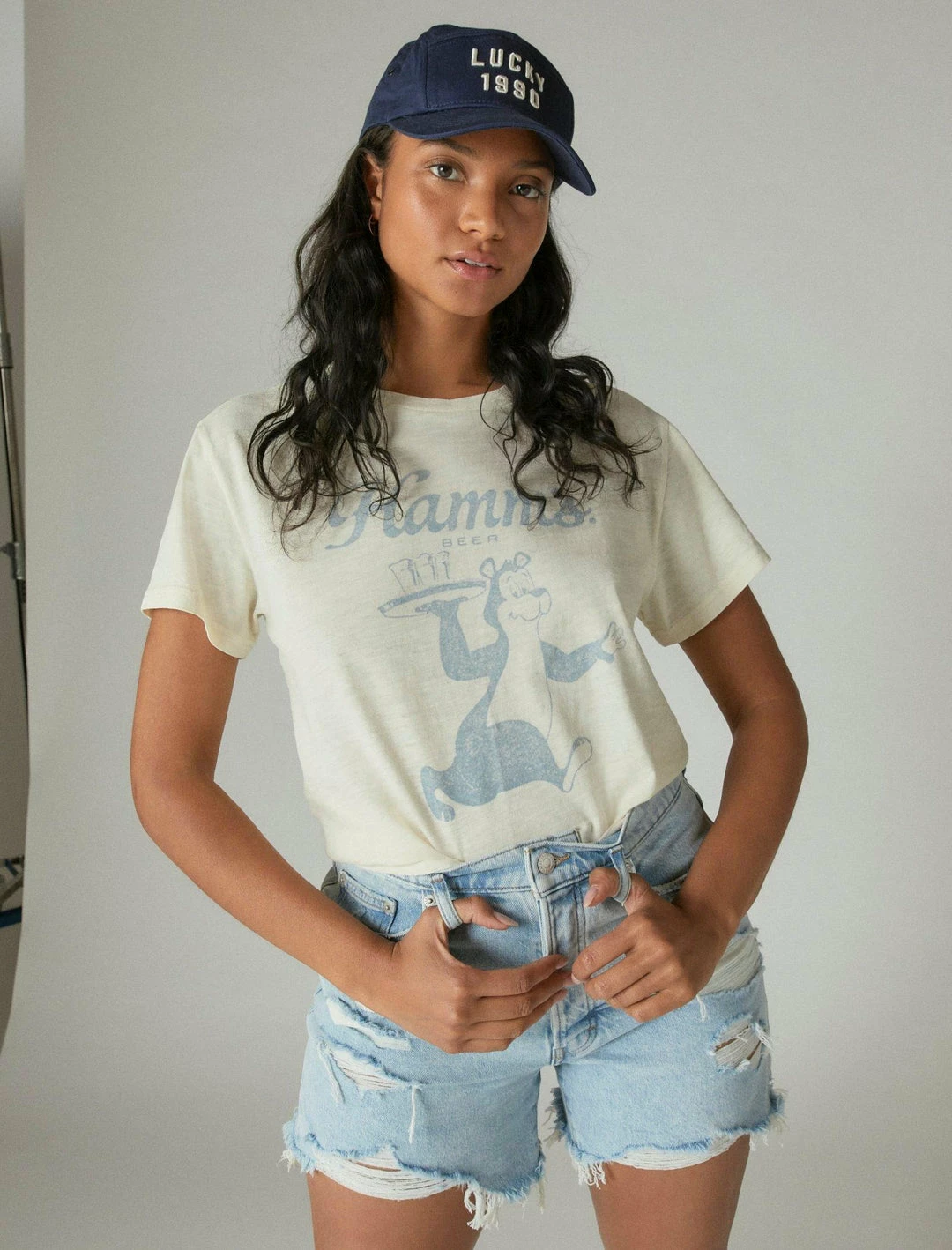Keep the good times rolling with this vintage-inspired Hamms Bear graphic t-shirt. Cut for a relaxed fit, your new fave tee looks great with distressed denim shorts or jeans for the ultimate casual-cool look.Crew neck. Short sleeves
