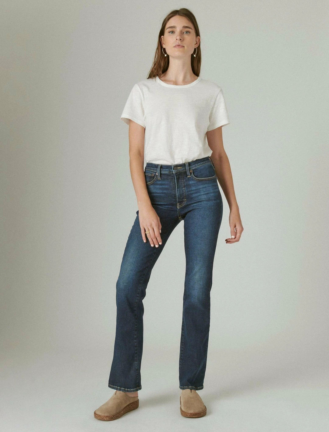 Our new Bianca Boot is a curve-hugging high rise, slim from the hip to the knee and leading to a relaxed bootcut leg that’s just right with heels or sneakers. High rise slim fit with a bootcut leg. Medium wash denim. Advanced stretch for a comfortable modern feel in a high-stretch fabrication. 5-pocket styling with button-and-zip fly. Rise – 10 1. 4 inches; Leg opening – 18 inches (size 27)