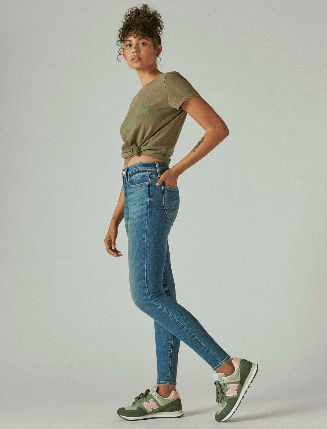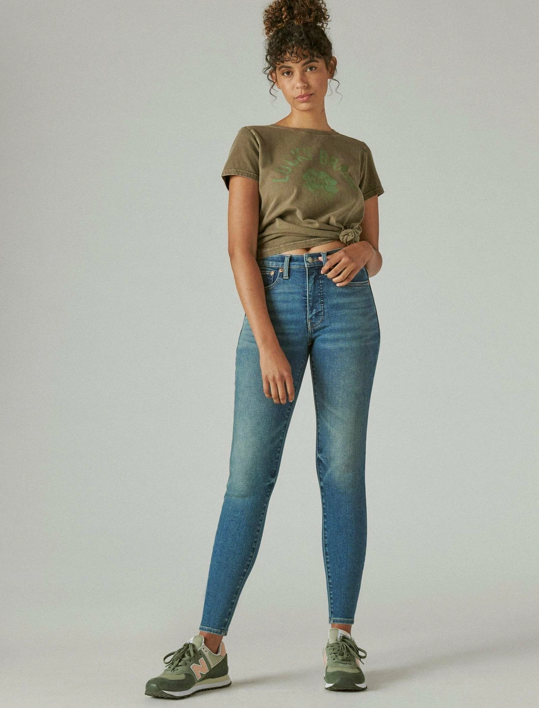 The High Rise Curvy Skinny is our newest skinny fit crafted with LYCRA FREEFIT technology, a soft and easy sculpting fabric that gives a flawless fit and lasting comfort for a variety of body shapes.High rise skinny fit with a skinny leg. Medium vintage wash denim. Crafted with Lucky Free Stretch, a soft and easy sculpting stretch. 5-pocket styling with button-and-zip fly. Rise – 10 1. 2 inches; Leg opening – 10 1. 2 inches (size 27)