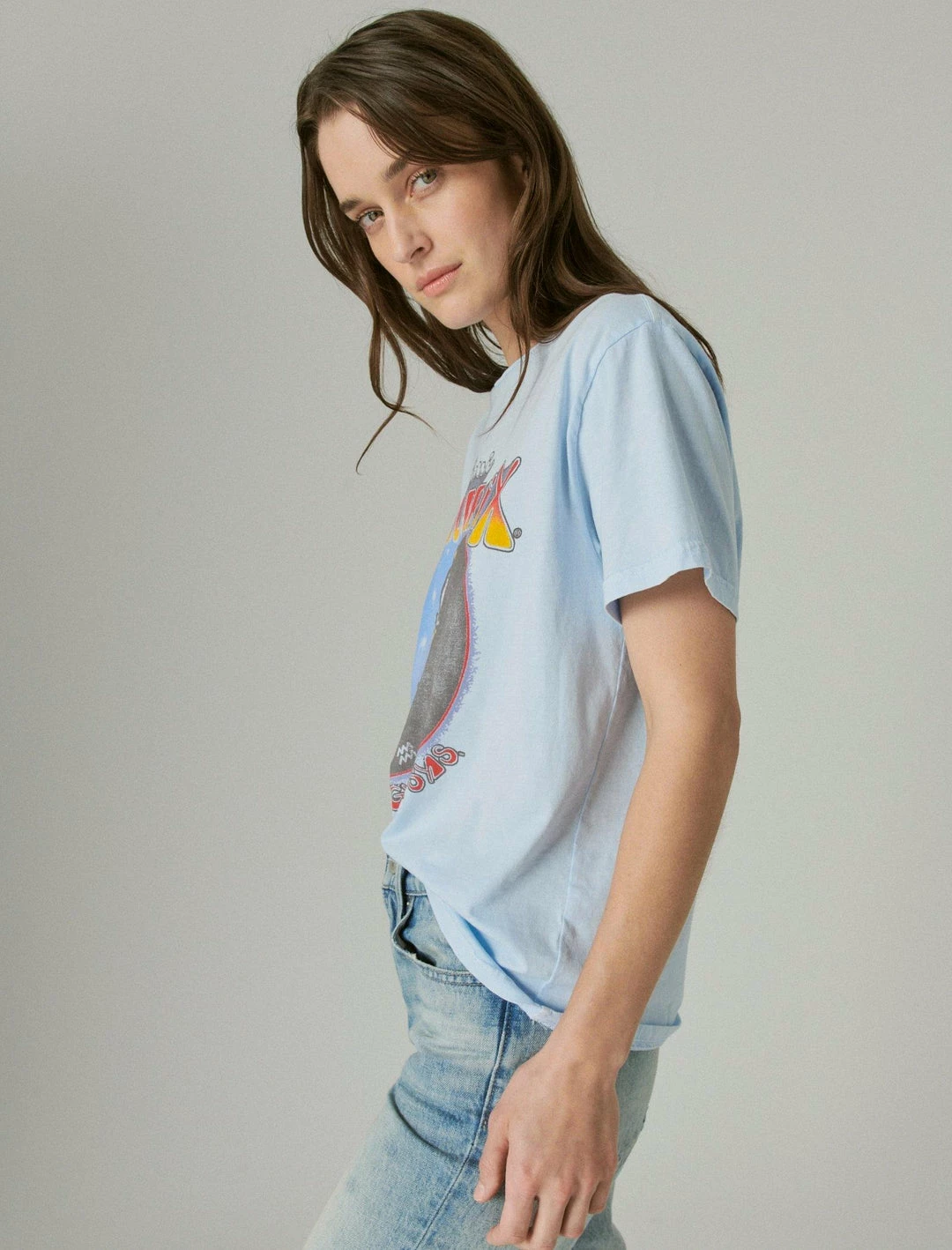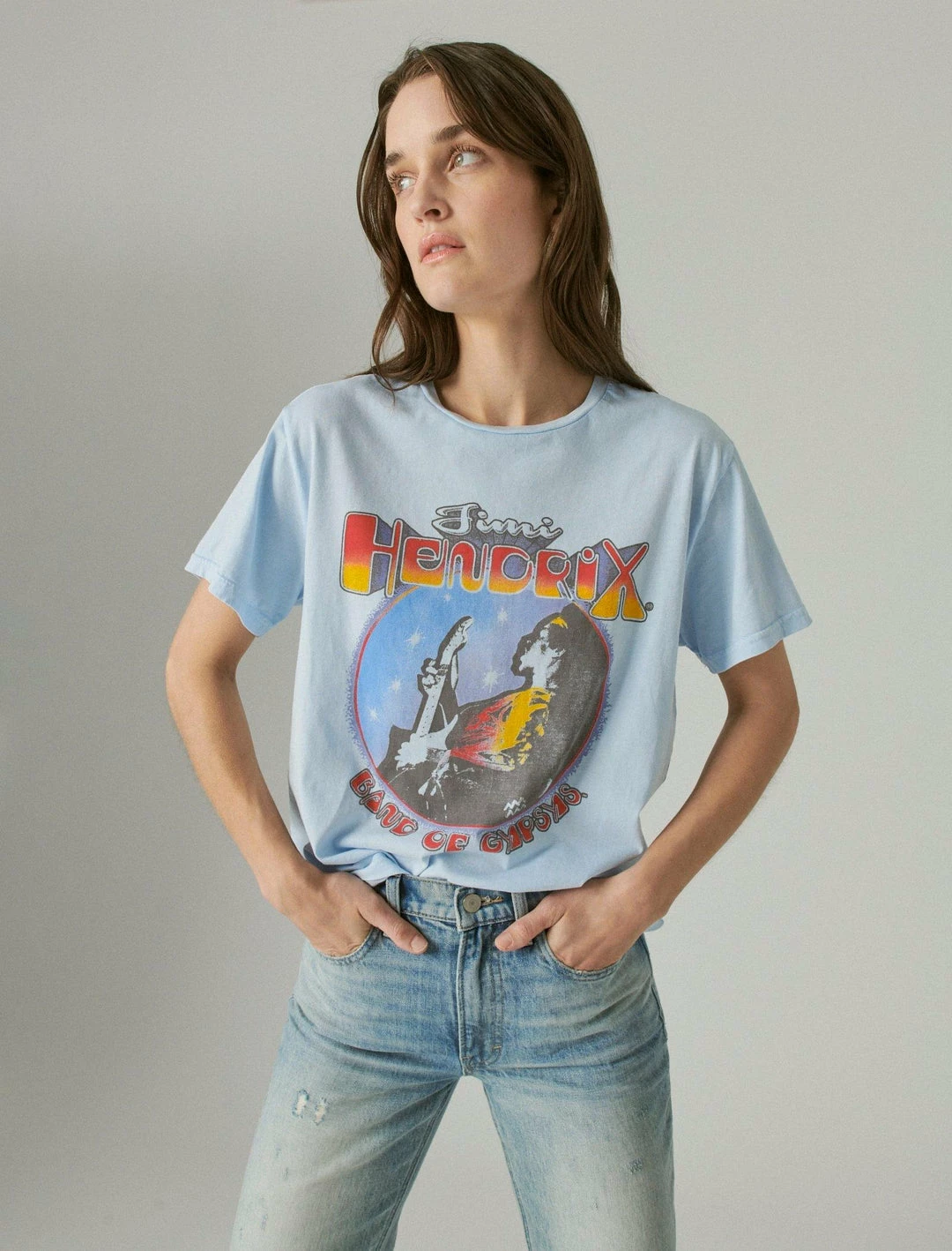 The coolest vintage-inspired tee features a flattering boyfriend silhouette with a Jimi Hendrix graphic in soft cotton for a true lived-in style.Crew neck. Short sleeves