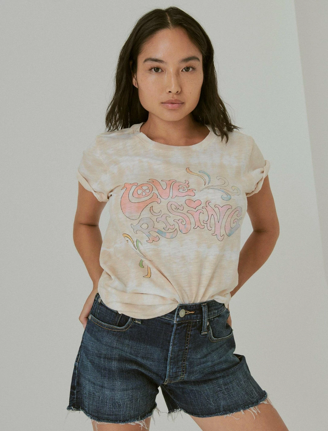 Cut for a classic fit, this Love Rising t-shirt lends a vintage vibe to any look with faded graphics and groovy tie-dye design. Wear with shorts or jeans and a button down for your own authentic style.Crew neck. Short sleeves