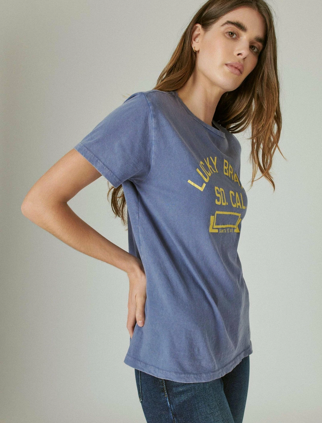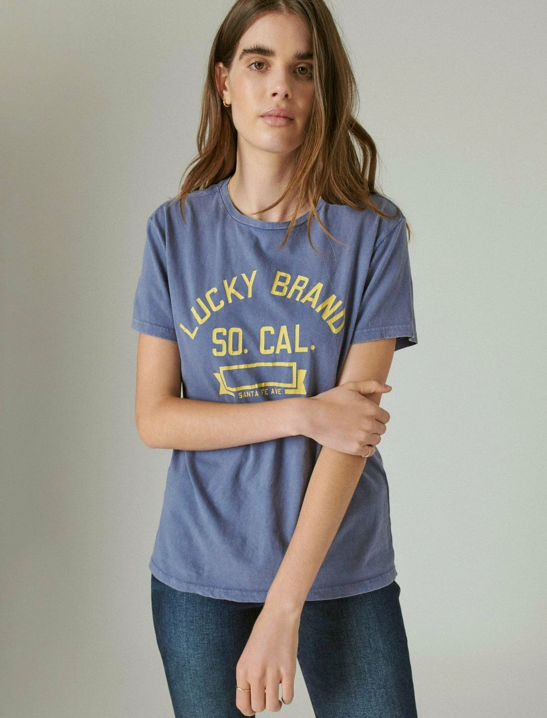 Stay lucky with this vintage-washed crew-neck T featuring classic “Lucky So. Cal” graphics and cut from soft cotton in a relaxed Boyfriend silhouette for laid-back comfort. Crew neck. Short sleeves