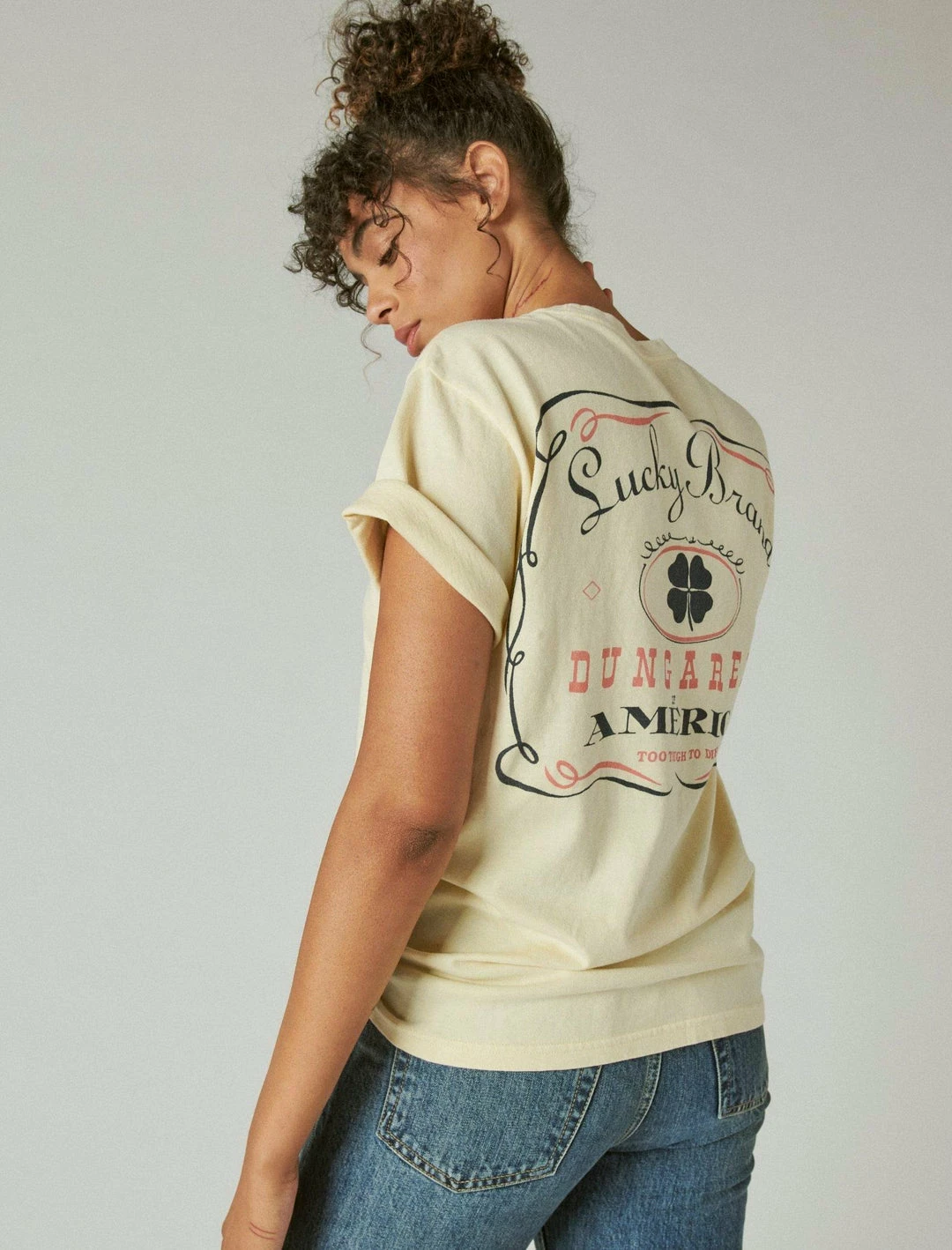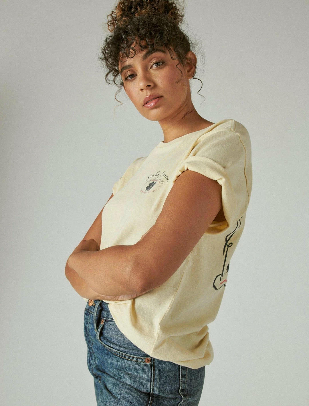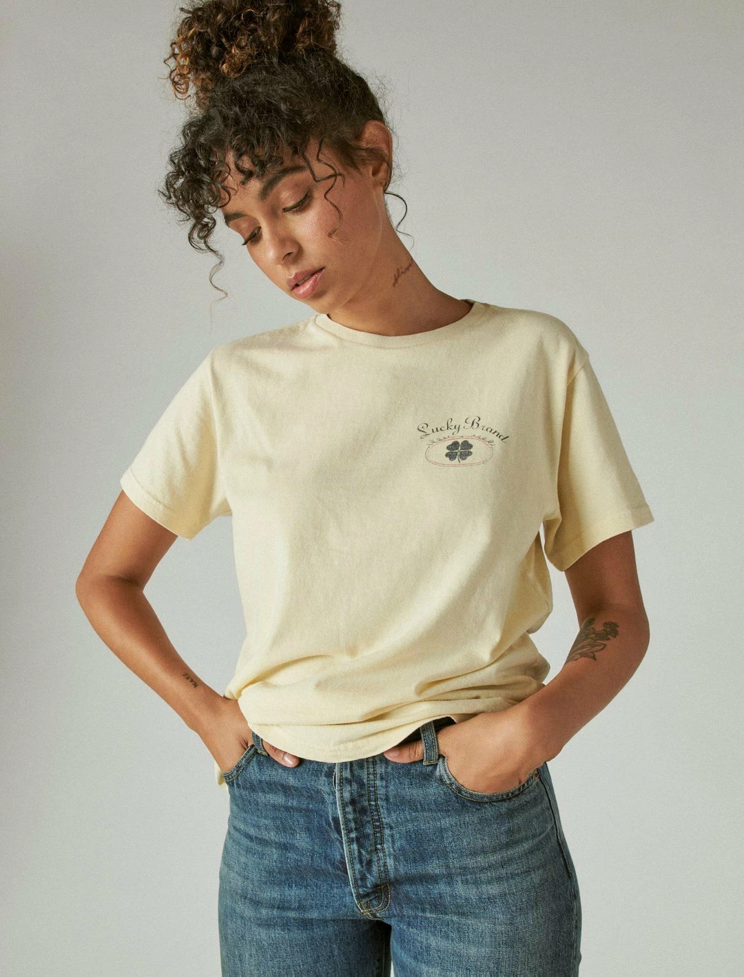 Keep things classic in this all-cotton tee cut in a boyfriend silhouette and featuring a timeless Lucky logo at the chest and back.Crew neck. Short sleeves