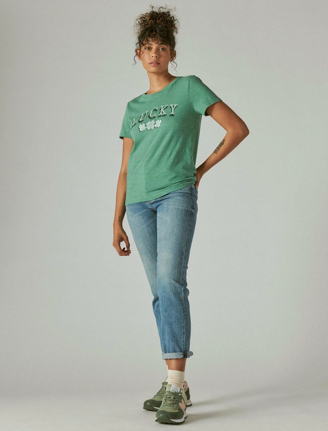 Keep luck on your side in this classic crew neck t-shirt crafted of 100% cotton and featuring a clover logo graphic at the chest.Crew neck. Short sleeves