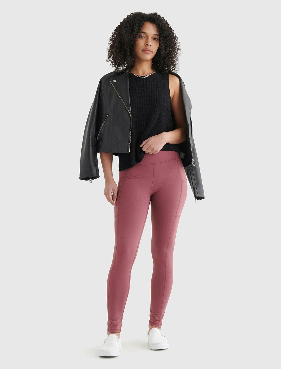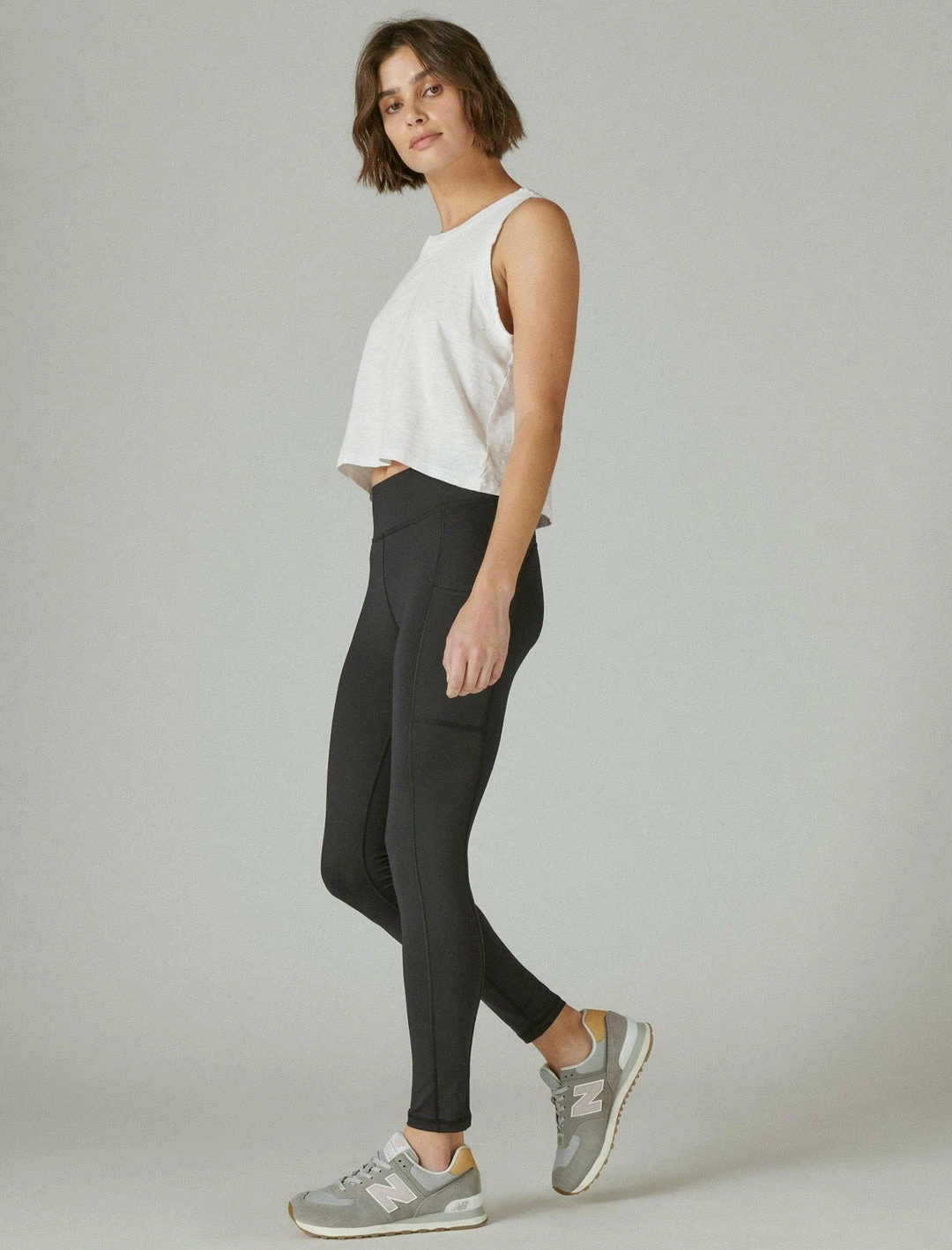 A perfect legging is hard to find, so we made one ourselves. These leggings are cut for a mid-rise that lays comfortably along your waist, leading to a stay-in-place skinny leg. A versatile piece to add to your casual wardrobe. High rise full length. Pocket legging with shape-enhancing contoured seams. 4-way stretch for easy movement. Medium compression. Moisture wicking