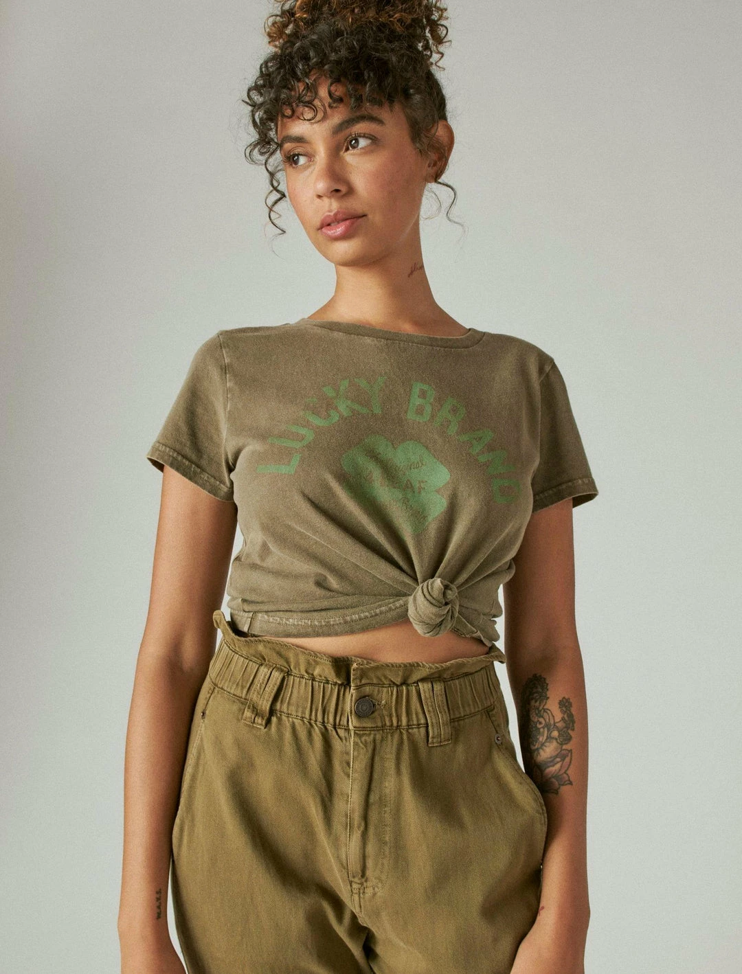 Pulled from our archives, this vintage-washed re-issue classic tee crafted from soft 100% cotton features a faded logo and clover graphic at the chest. Throw on a denim trucker jacket and sneakers for an authentic, laid-back look.Crew neck. Short sleeves